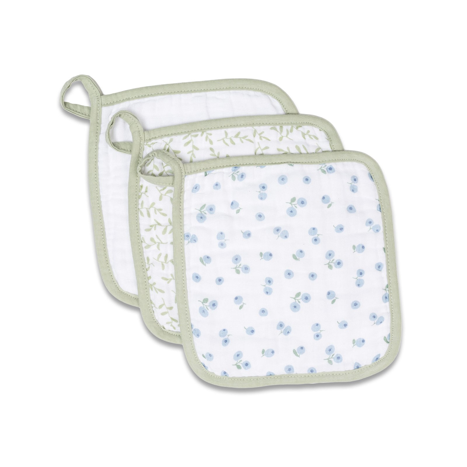 3-pack Wash Cloths – Blueberries, White & Greenery