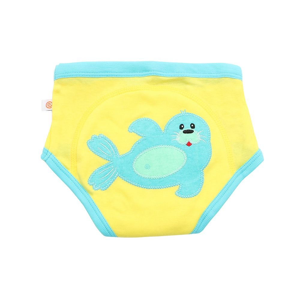 Good-bye diapers! Hello “My First Pair of Underwear” Made from super soft cotton spandex stretch rib using Certified Organic Control Standard OCS100 ORGANIC COTTON, our training pants are perfect for that potty training time in a child’s life. What do you use when diapers are needed less and underwear is just too risky? Give them their My First Pair of Underwear. Experts say that after a few weeks of successful potty breaks, a child may be transitioned into training pants before going into regular underwear. Not just training pants, your childs First Pair of Underwear! Available in a variety of animal characters and in sizes 2-4 Years, our unique training pants are made of Super Soft Organically grown Cotton, and have a layer of double sided 80/20 Cotton/Polyester blend terry sandwiched between the layers of organic cotton for extra absorbency where it’s needed most to stop leaks, in case an accident occurs. The perfect stepping stone in the potty training process. Cute animal character, with a turn me around feature on back! Fun bright colors and elevated embroideries make potty-training more fun! Super comfortable in organically grown cotton with a soft fully elastic waistband. ZOOCCHINI’s organic potty-training pants provide you with the quality, design, flexibility and durability you are looking for. Makes a great everyday gift! Ages 2T/3T: Fits approx. 26-33 lbs Ages 3T/4T: Fits approx. 30-37 lbs Package Includes: Set of 3 Organic Cotton Potty Training Pants Designed in the USA