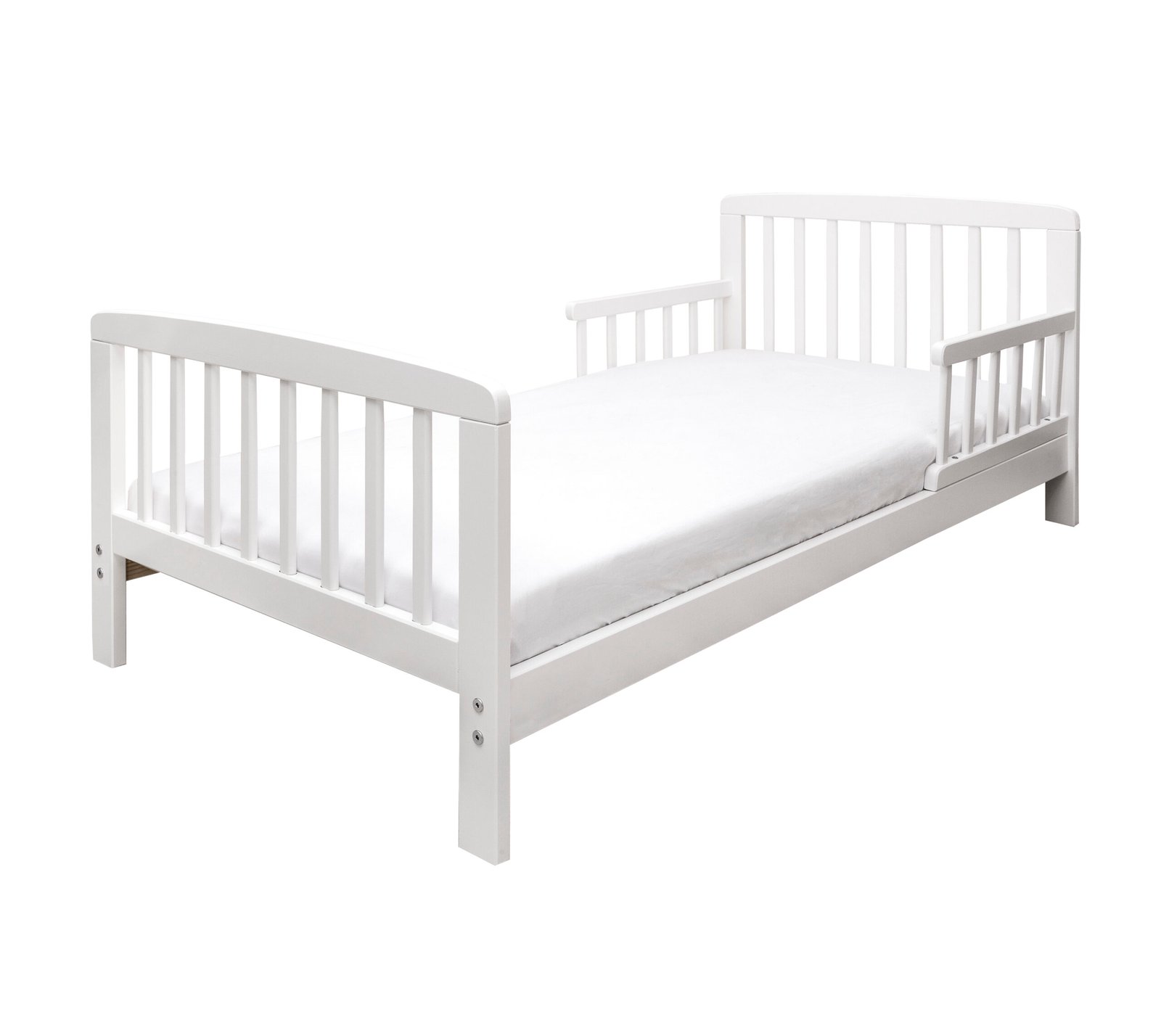 The toddler bed is ideal for the transition from a cot to a big bed and it has side rails to prevent falls. The frame is made from durable pinewood and is incredibly easy to assemble with all instructions and tools included. The junior bed has sturdy wooden slats that form a solid base, which is low to the ground for easy access, and a painted finish in timeless white that will look great in any bedroom or nursery.