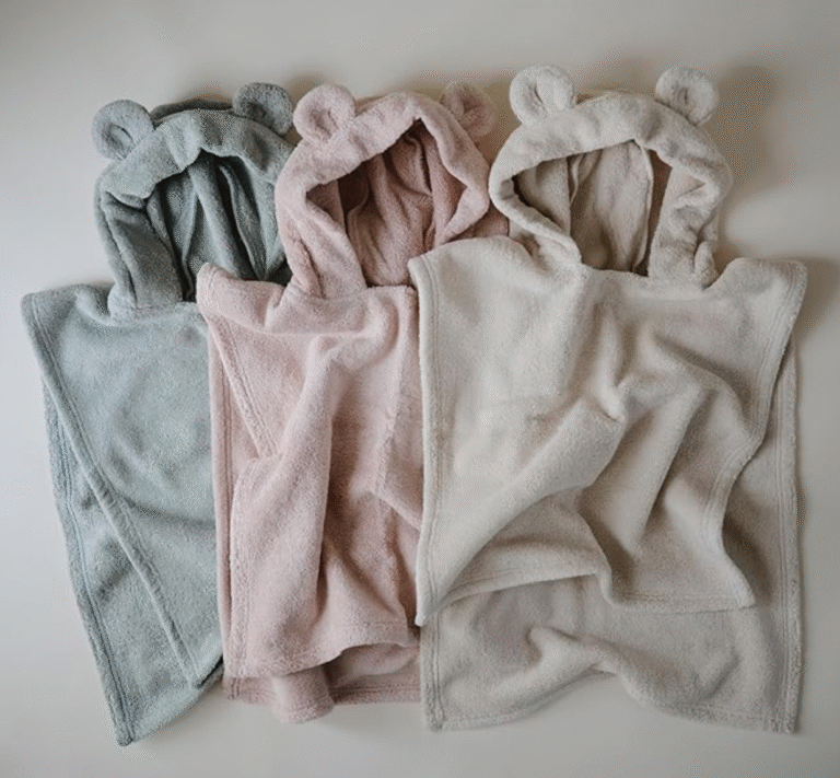Our extra soft fleece fabric is machine washable and holds up wash after wash without losing its plush feel. Complete with an attached hood and sweet bear ears, this towel keeps little ones warm and cozy from top to bottom.