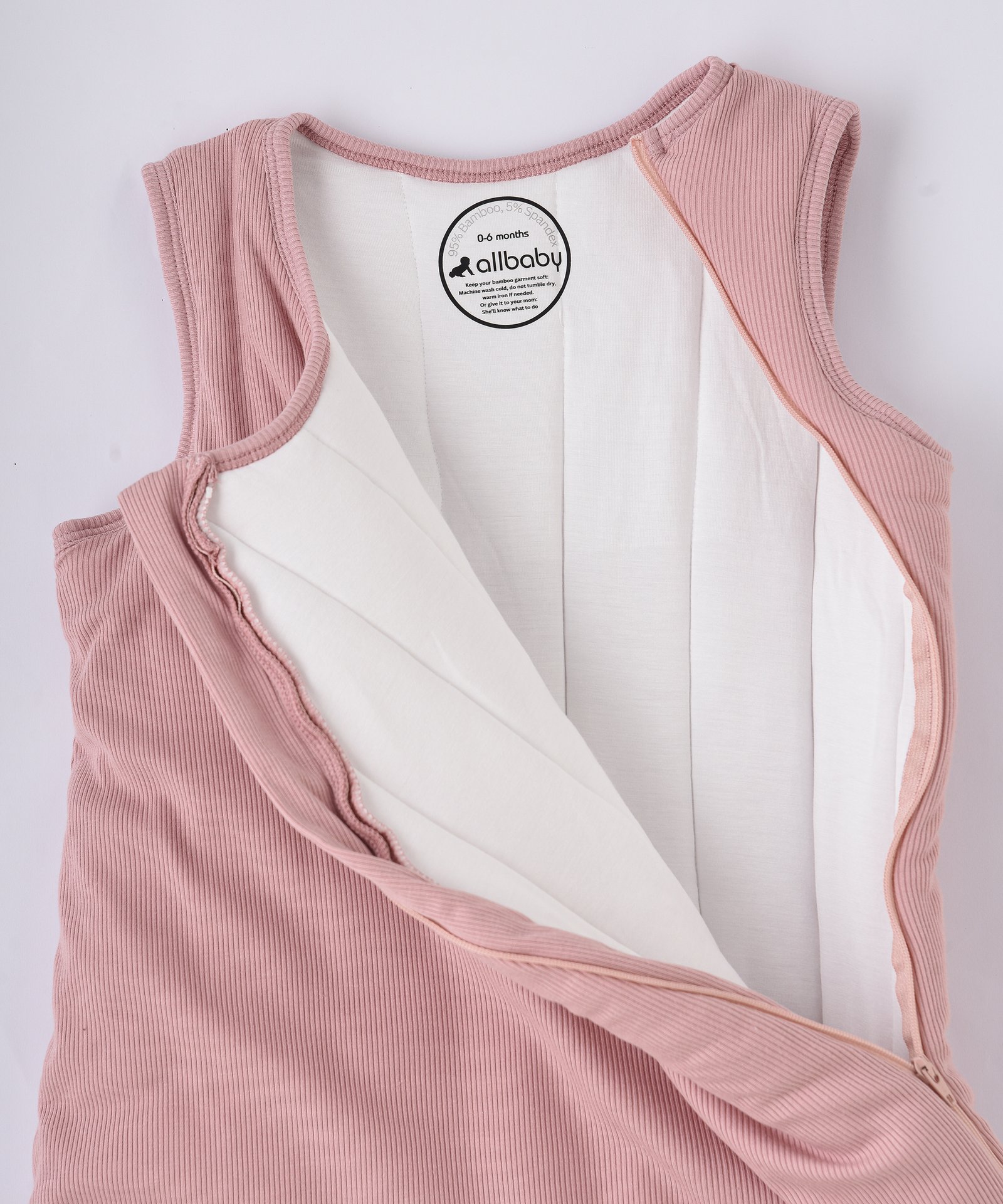 Made from luxurious ultra-soft, breathable ribbed bamboo fabric (comprising 95% bamboo and 5% Spandex), this sleeping bag is perfect for maintaining a comfortable temperature during warm or cool nights. Naturally hypoallergenic and gentle on sensitive skin, bamboo is an ideal choice for babies with eczema or allergies.