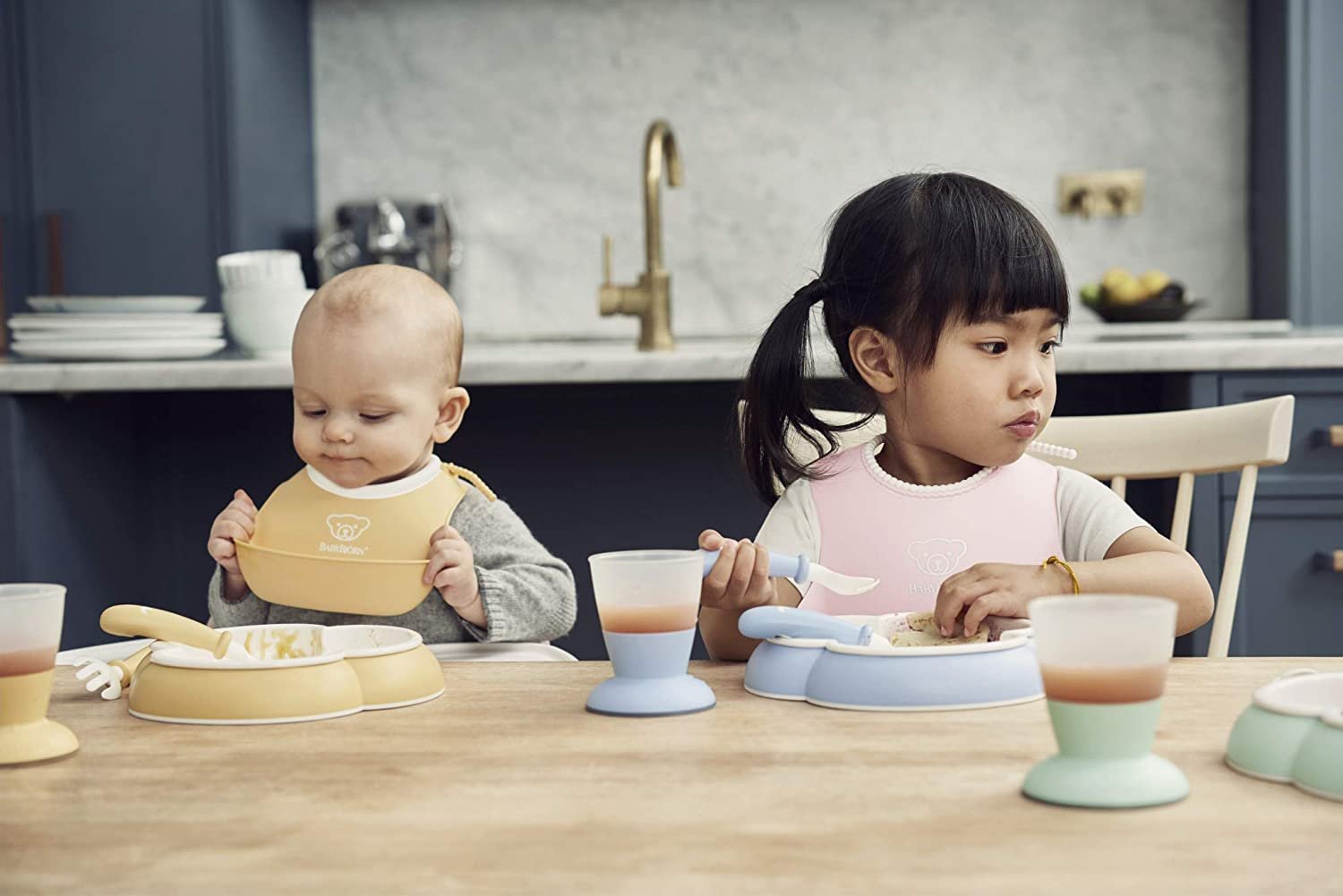 A baby bib in comfortable plastic that catches any food that doesn’t make it into your child’s mouth. The deep spill pocket holds its shape so that the food is not squeezed out by your child’s movements. The soft neckband is fully adjustable so the bib can continue to be used as the child grows. The baby bib can be easily wiped clean or washed in a dishwasher, and the fast-drying plastic means it is soon ready for use again. Suitable from approx. 4 months.