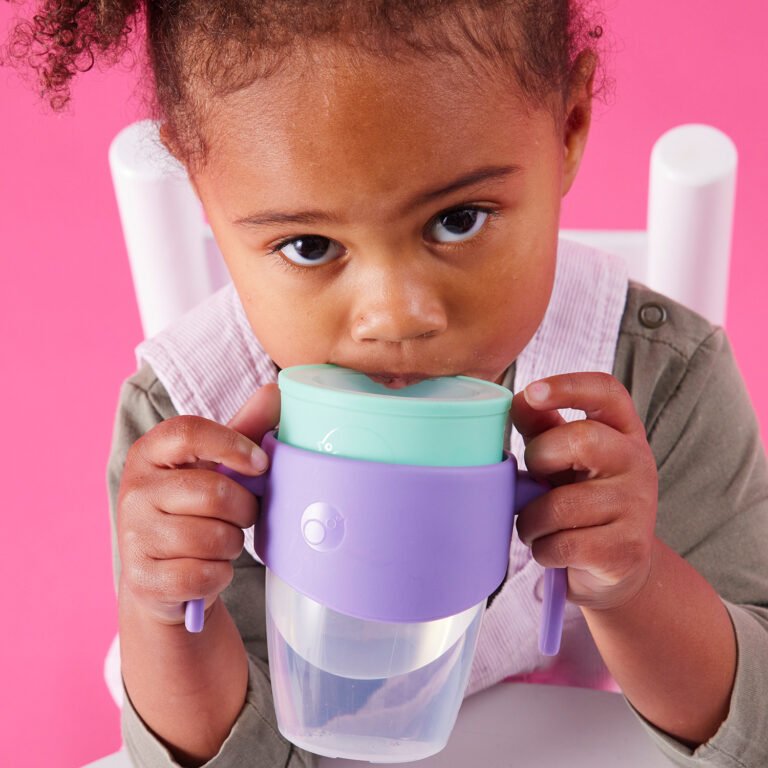 Introducing the b.box Toddler 360 Cup in Lilac Pop, a breakthrough in toddler drinkware designed to support independent drinking with a sophisticated twist. This cup features a unique, lip-activated silicone rim that allows for 360-degree sipping from anywhere around the edge, offering an innovative solution to flow control and spill prevention. The silicone rim automatically seals when not in use, ensuring a mess-free experience. Engineered for little hands, the cup’s wide profile handles are effortlessly grippable, promoting self-led drinking. With its dual-mode functionality, the handles can be adjusted for at-home use or locked for on-the-go travel, preventing leaks and maintaining hygiene. The transparent lid and cup encourage hand-eye coordination by letting children see the liquid inside, while also allowing parents to monitor hydration levels easily. Suitable for both cool and warm liquids, this 250ml capacity cup is a versatile addition to your child’s daily routine, ensuring safety with microwave, dishwasher, and sterilizer compatibility, available in four vibrant color combinations. Note: The cup’s base is not compatible with other b.box bottle or cup attachments.