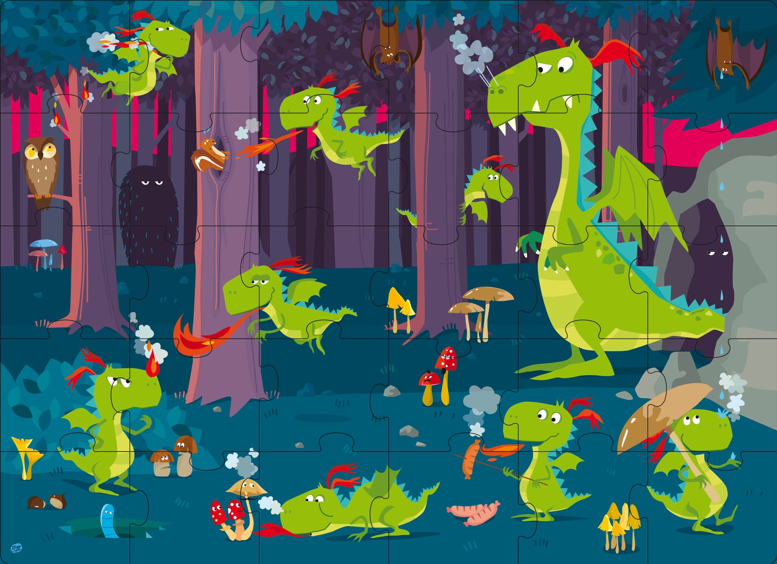 Sassi Book And Giant Puzzle Round Box Dragons In The Forest