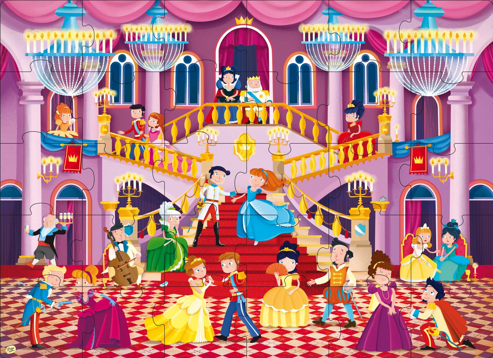 The ballroom’s decorated, the candles have been lit, the guests have arrived: everything is ready for magical evening of the Grand Ball! The princesses are wearing their prettiest dresses: who will the prince choose for his wife? Join them in the castle, read the rhyming story and build the giant puzzle!