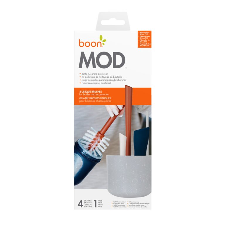 CLEAN UP YOUR ACT Boon’s MOD makes cleaning easier and looks great while doing it! This fully stocked set includes four brushes in different sizes, each with durable nylon bristles which are great for getting the goop out of bottles, straws, sippy cups and breast pump parts. The base drains water and keeps the brushes together so that it’s easy to grab exactly the right one for the job.