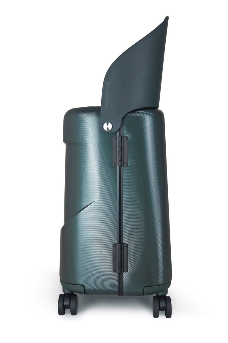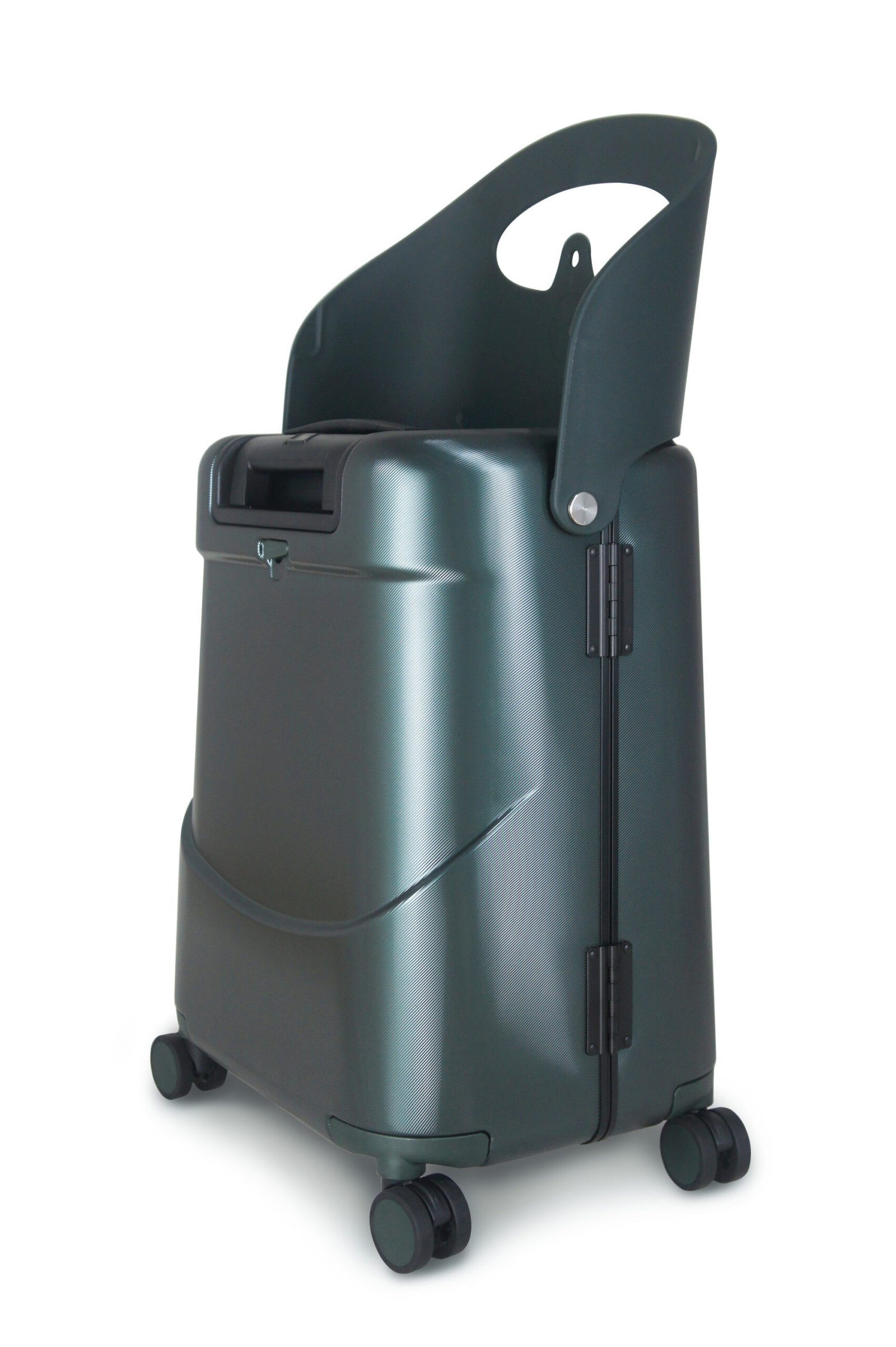 When traveling without a child, the seat on this spinner suitcase can be used to safely store a diaper bag, travel bag or a briefcase.