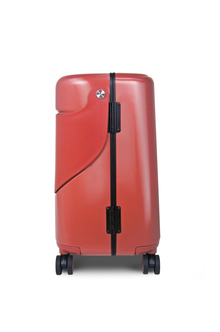 When traveling without a child, the seat on this spinner suitcase can be used to safely store a diaper bag, travel bag or a briefcase.