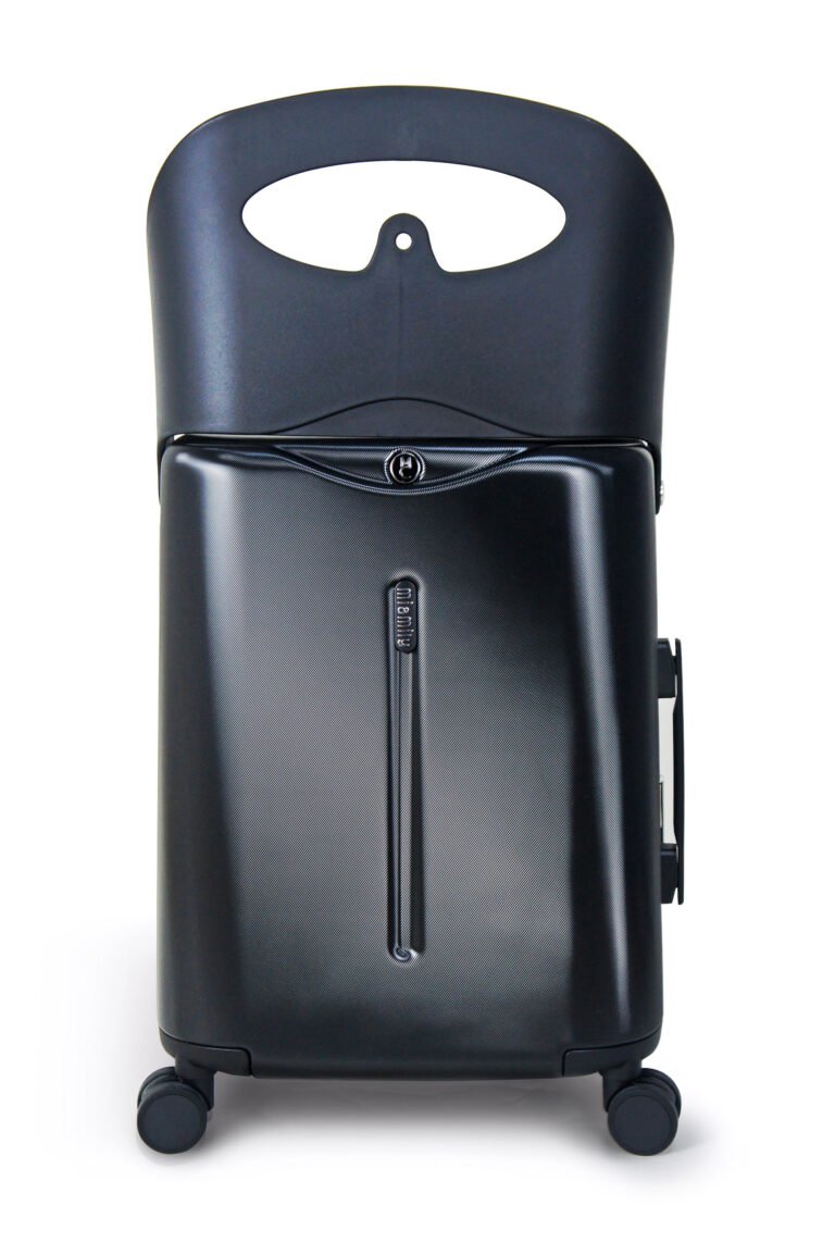 When traveling without a child, the seat on this spinner suitcase can be used to safely store a diaper bag, travel bag or a briefcase.