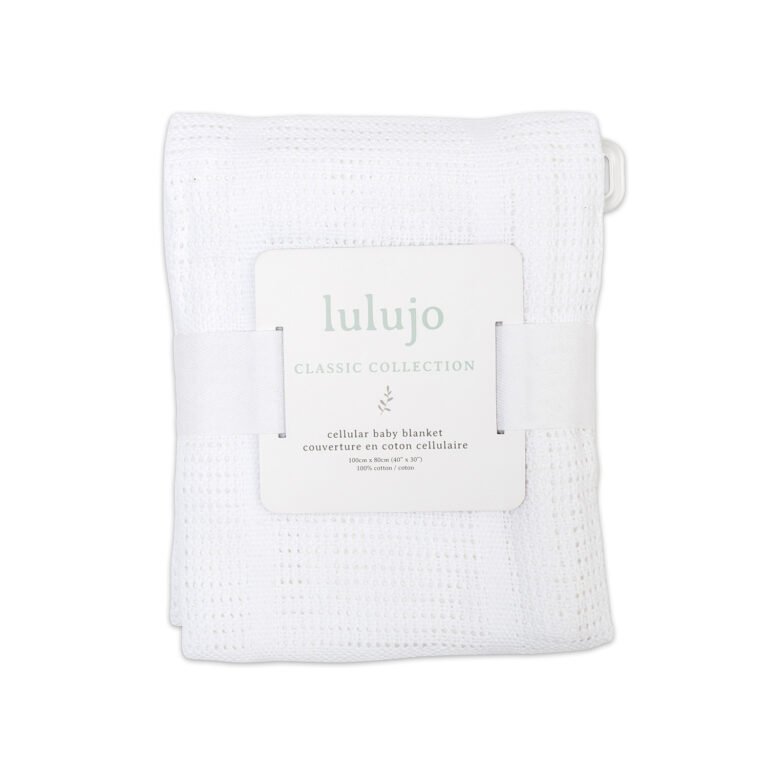 Lulujo’s cellular blankets uses a traditional cell construction to make a beautifully lightweight and breathable nursery necessity. Use this blanket year round to keep baby warm and cozy.
