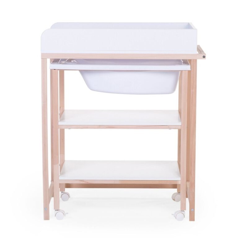 The bath component is equally practical and thoughtfully designed. Equipped with smooth-rolling wheels, the bath can be easily moved and conveniently stored directly beneath the changing table when not in use, saving valuable space in your nursery or bathroom. This feature makes it easy to bring the bath to your preferred location and store it efficiently afterward, catering to the needs of busy parents.