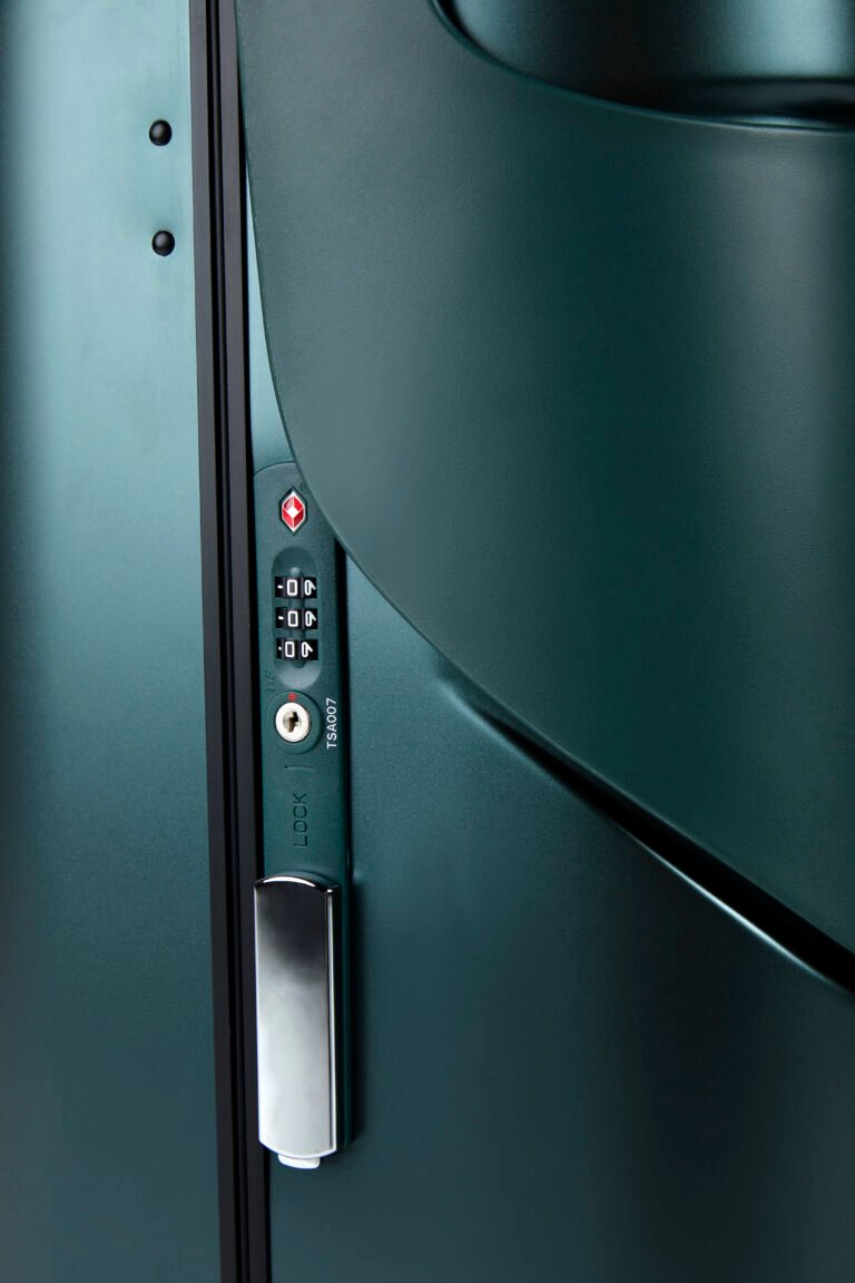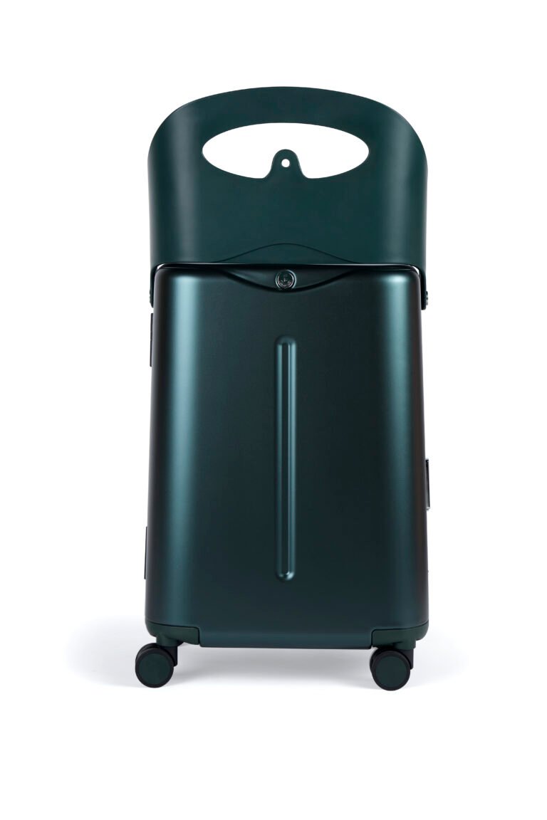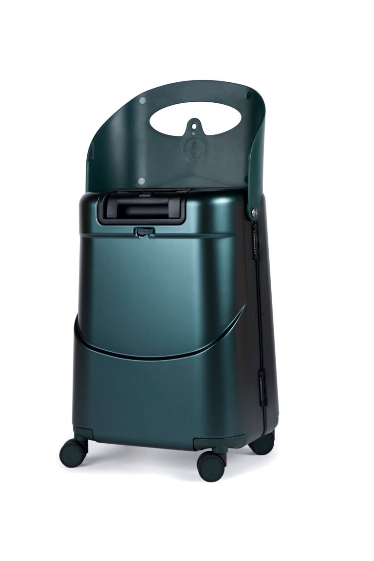 When traveling without a child, the seat on this spinner suitcase can be used to safely store a diaper bag, travel bag or a briefcase.