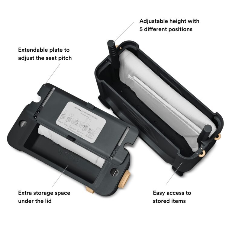 The Stokke® BedBox™ is the world’s only ride-on suitcase for children that turns into any seat into bed. This travel essential combines Scandinavian style, aviation-inspired design and practical features to make your journey easier. With this sleep-on suitcase, children from 3-7 years can rest comfortably or nap during both long and short haul flights, plus – there’s ample storage for your child’s must-haves. Once it’s packed, your little one can ride it (or pull it) through the airport terminal, making transport fun and stress-free. After the seat belt light goes off, you can turn the Jetkids™ BedBox™ into a cosy inflight bed in just 5 simple steps.