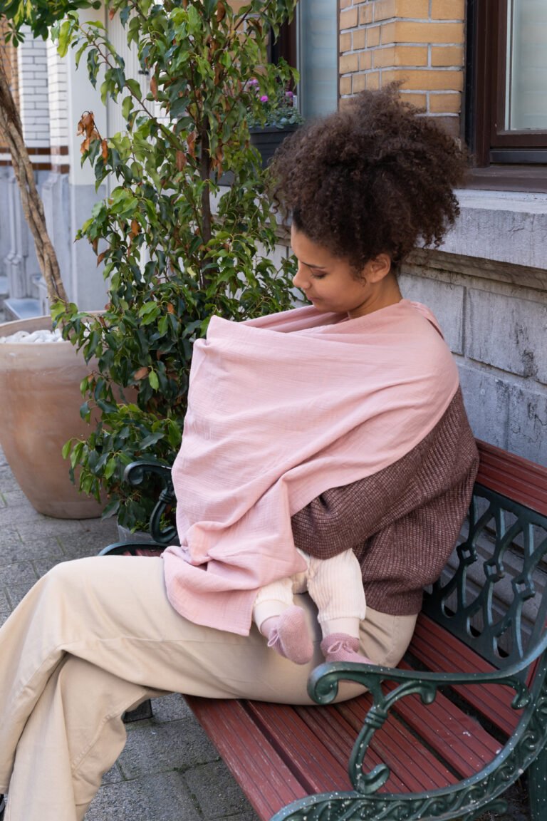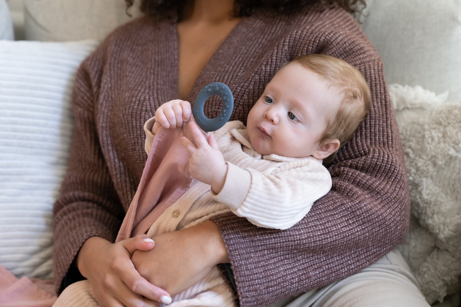The Mom’n Play nursing cape allows you to breastfeed your baby anywhere, in complete privacy. Made of organic cotton, it can easily be attached around your neck thanks to its non-slip ring. The Mom’n Play has been designed to be used as a teething ring, to wipe your baby’s face or to deal with unforeseen events while out and about.