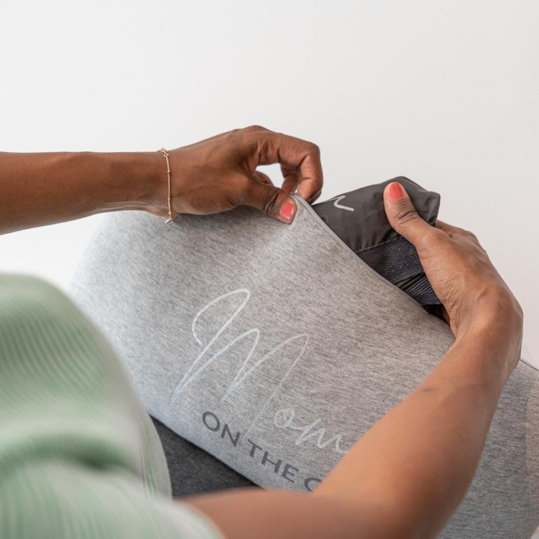 The On the Go pillow is your companion as a mom-to-be, from the start of your pregnancy until your baby is born, for feeding or relaxing. Its shape and filling have been designed to support your belly. This relieves your back and restores the natural position of the spine when you are sitting or lying down. Protect your pillow while travelling in the trendy bag, made from outdoor proof material. You can store this bag in the built-in zipper pocket of the pillow.