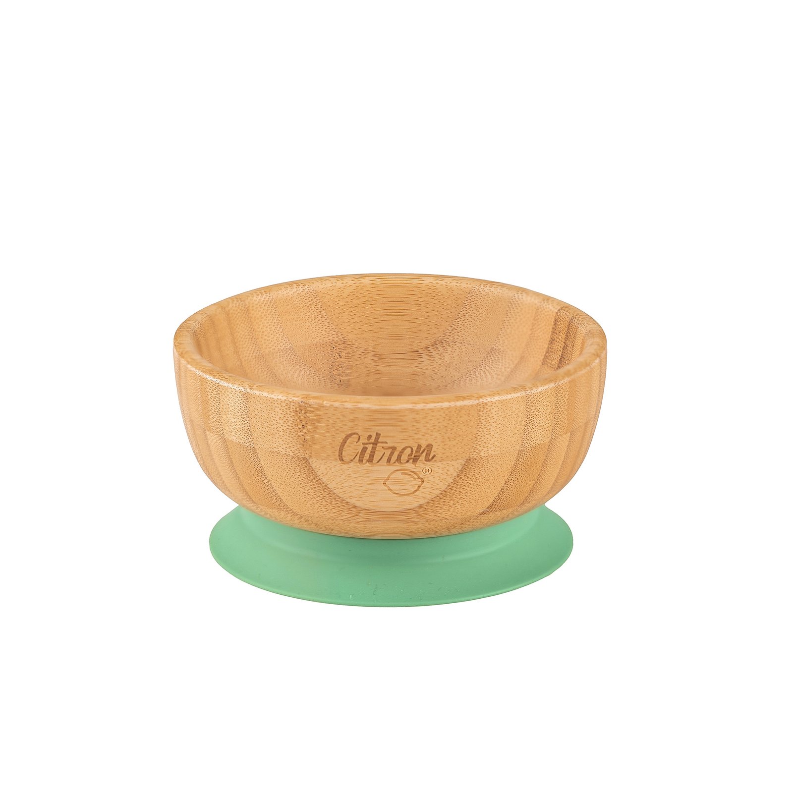 Organic Bamboo Bowl 300ml Suction + Spoon Pastel Green