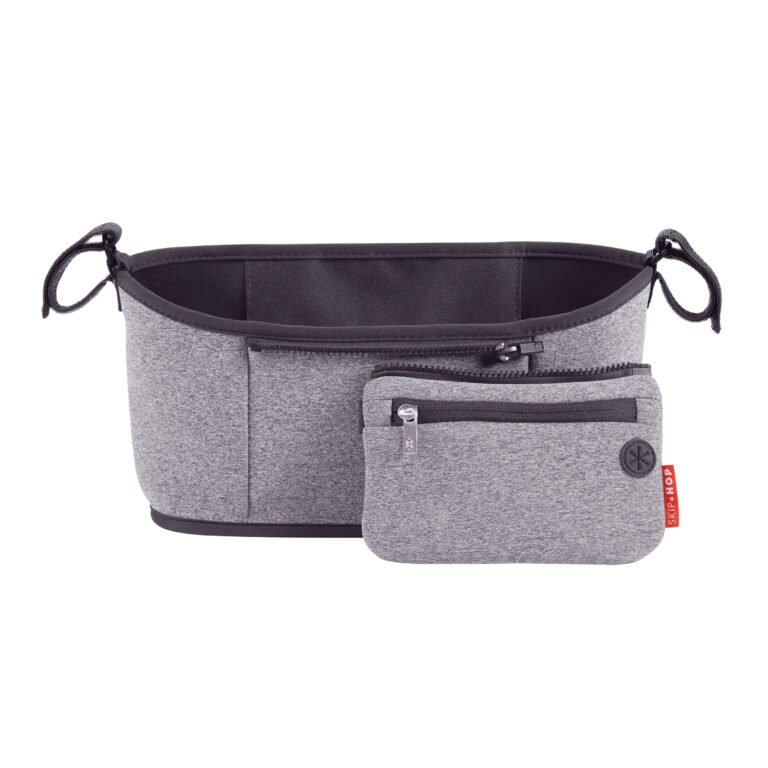 This insulated beverage and essentials caddy stretches to hold bottles and coffee cups securely, while providing easy access to your most important items. Fitting most stroller bars and handles, this organizer bag includes a detachable wristlet for errands and a headphone port for hands-free calls.