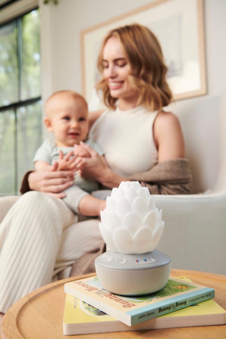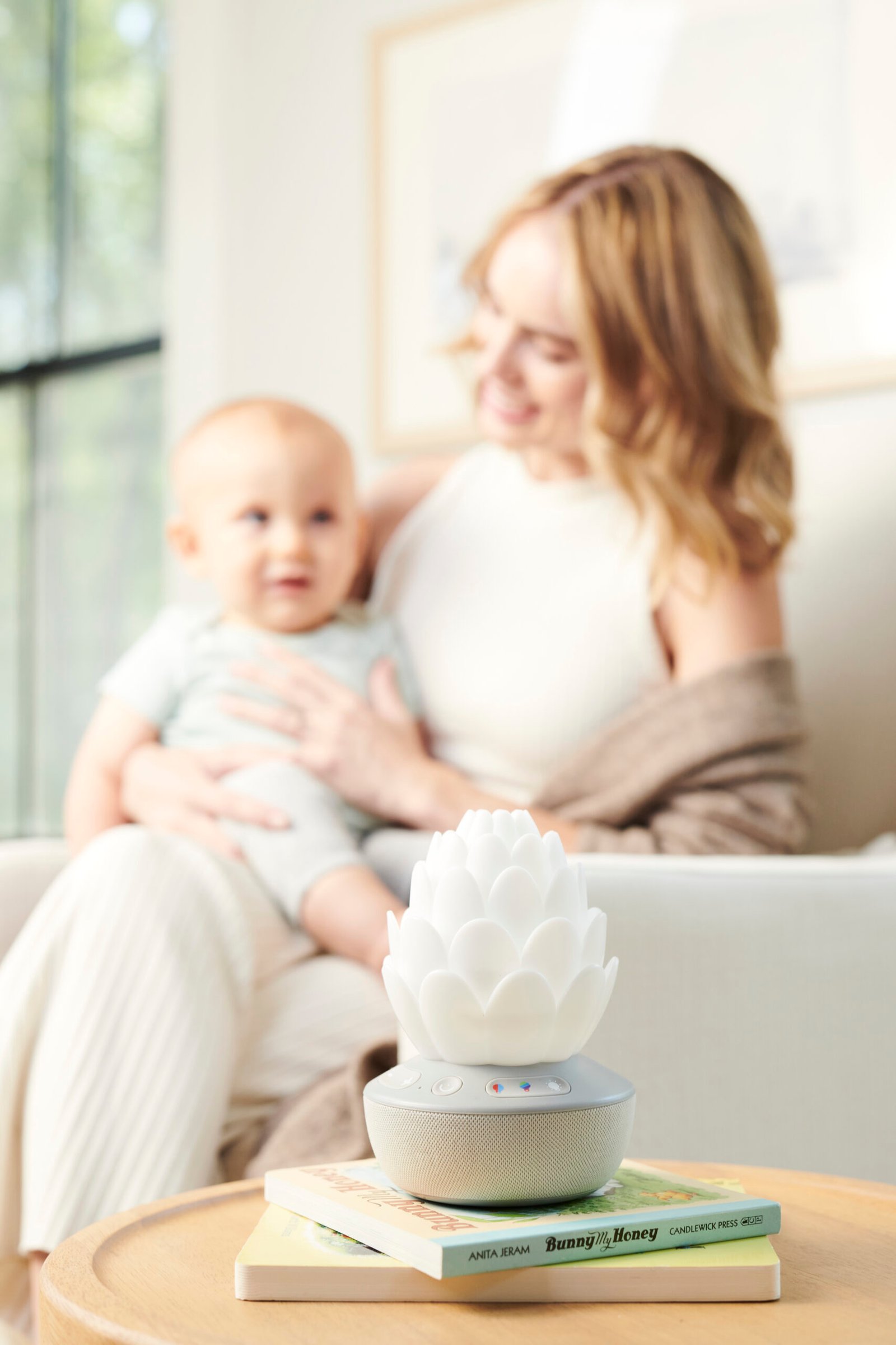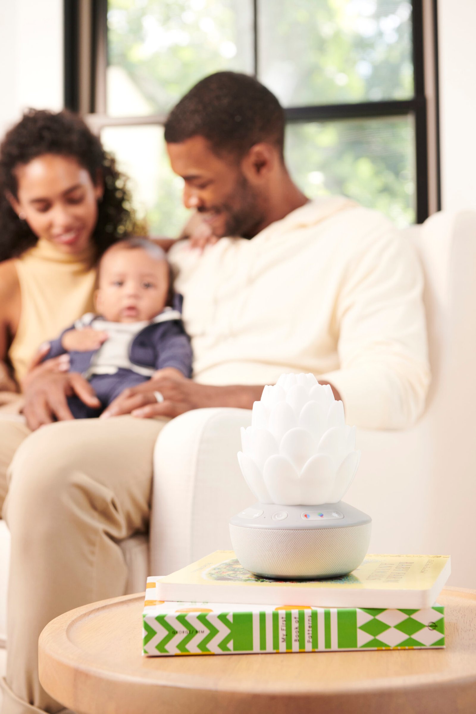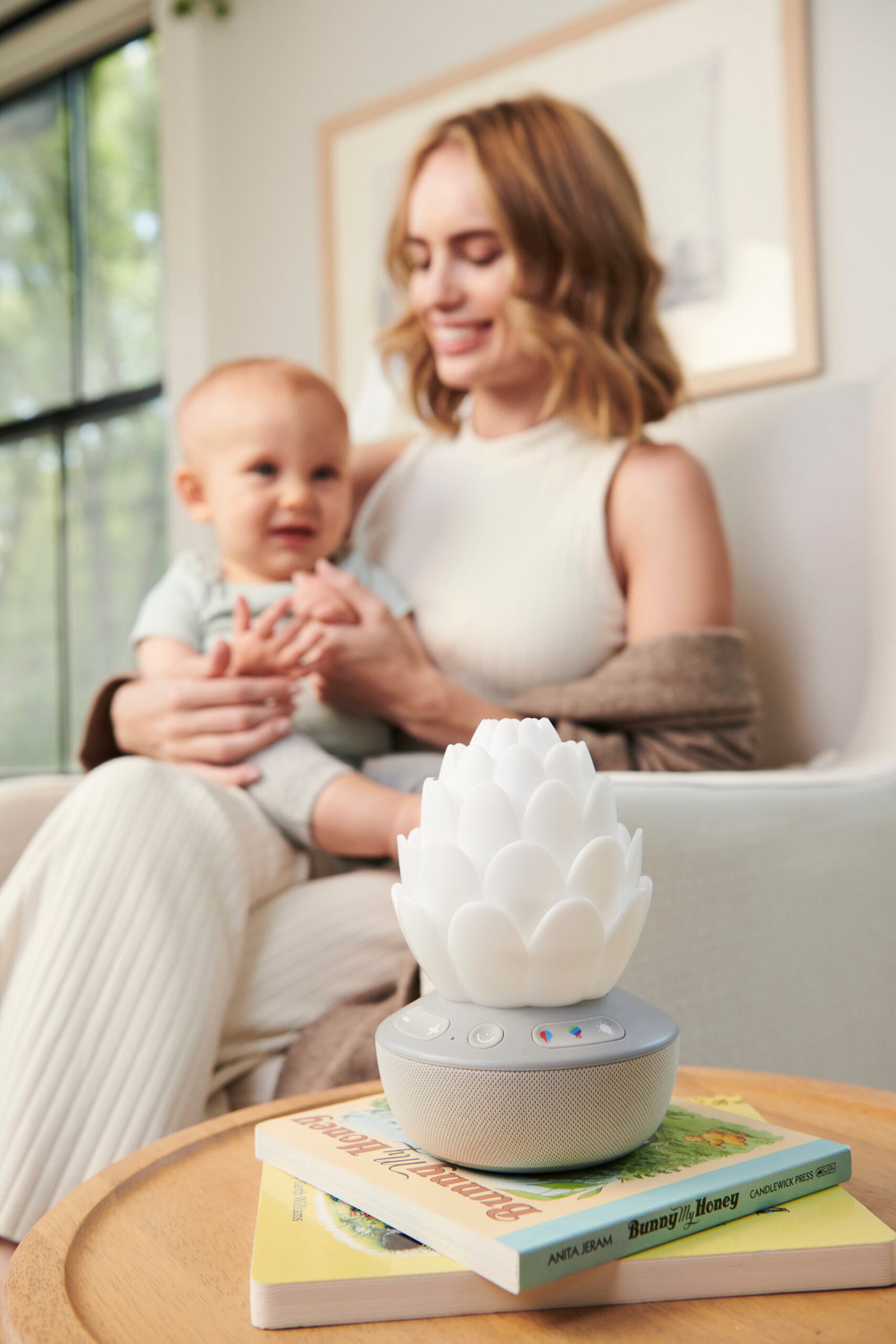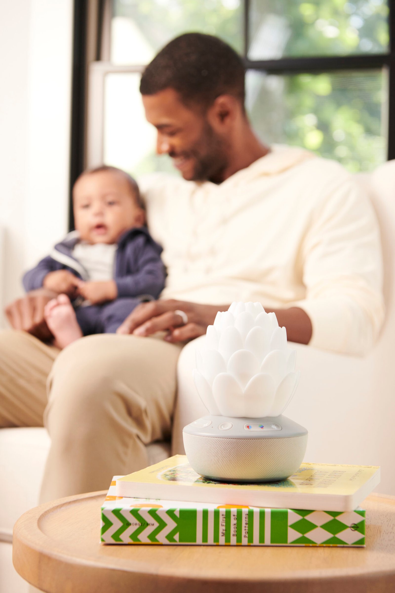 Comforting baby comes naturally with our décor-friendly botanical soother. Designed to automatically respond to baby’s cries, it features eight soothing melodies and sounds plus a voice recorder for customized comfort. Even better? It’s also a nightlight with seven different colors plus a multi-light show mode for a calming animated glow. We even included a thermometer so you’ll always know if baby’s room is a comfy temperature.