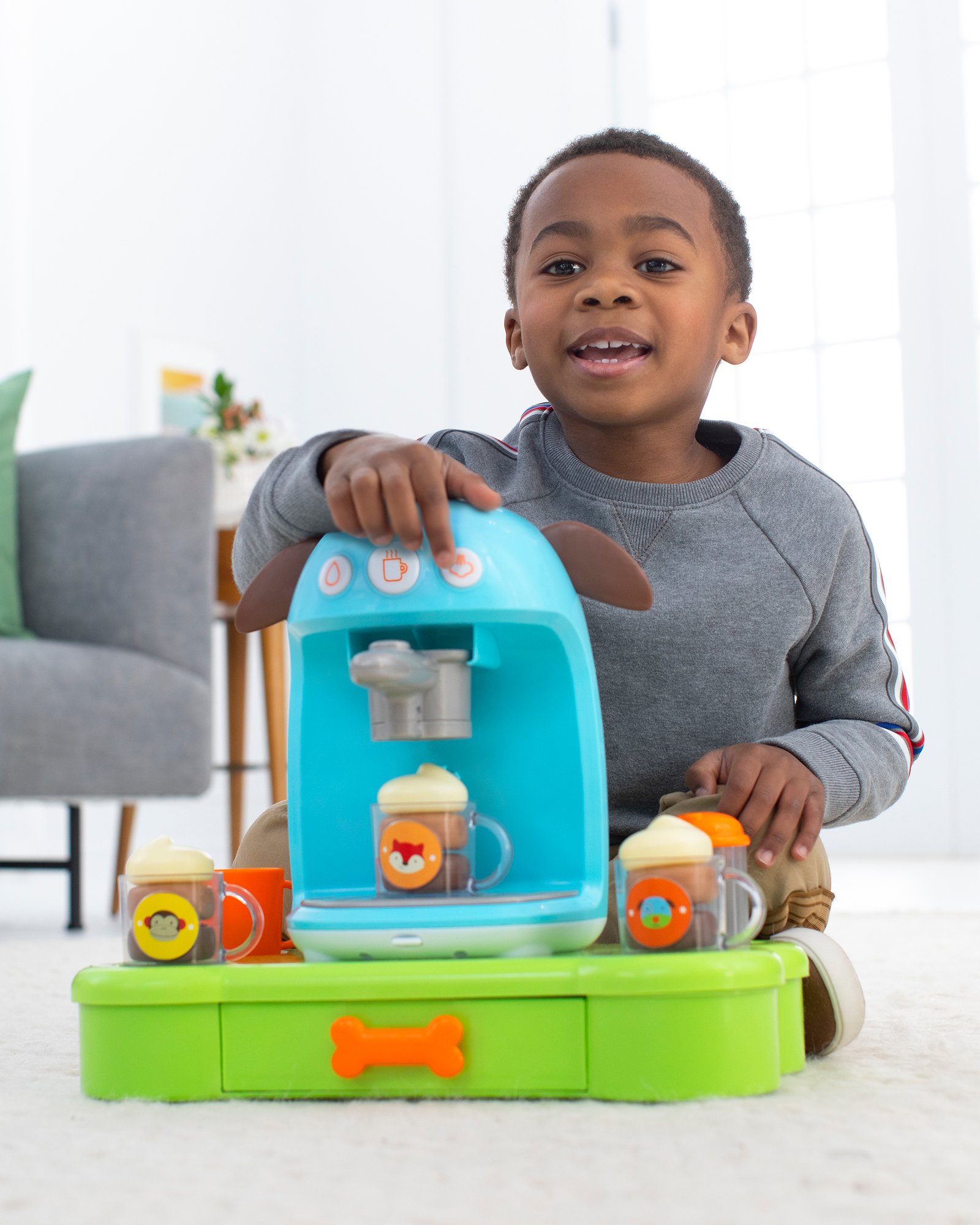 Build-your-own café treats! Loaded with a whole “latte” fun, little ones will love to make and serve yummy “drinks” like a real barista with this doggone cute set. A fill & drop filter, real coffee shop sounds, plus all the extras make this 19-piece set a perfect pick for pretend play.