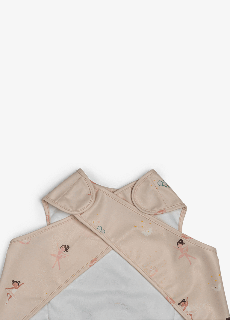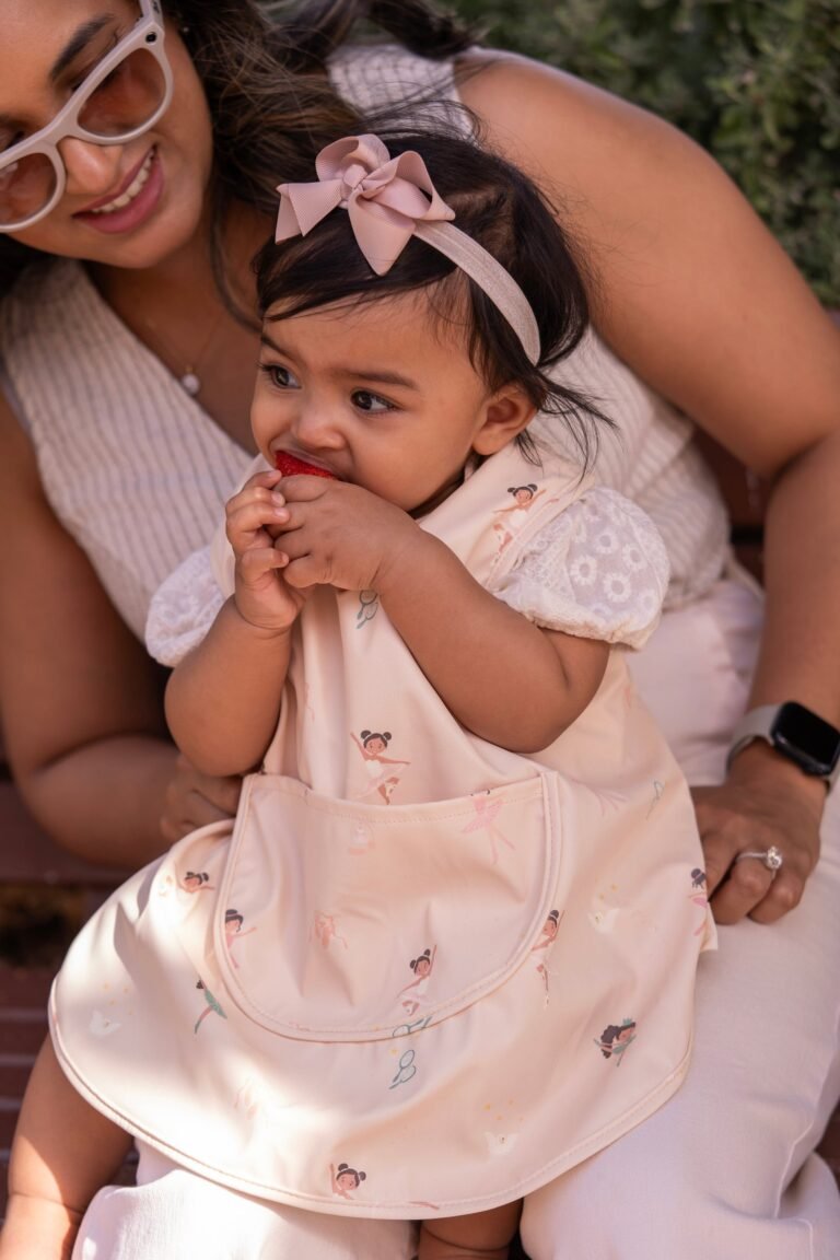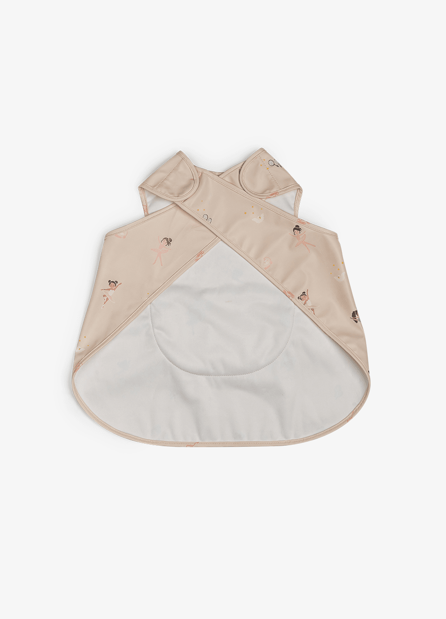 Highlights: -Sleeveless PU feeding bib – Front pocket and closes on the back – Easy to clean – Suitable for 9M+ – BPA free + Available in 2 themes: Vehicles | Ballerina