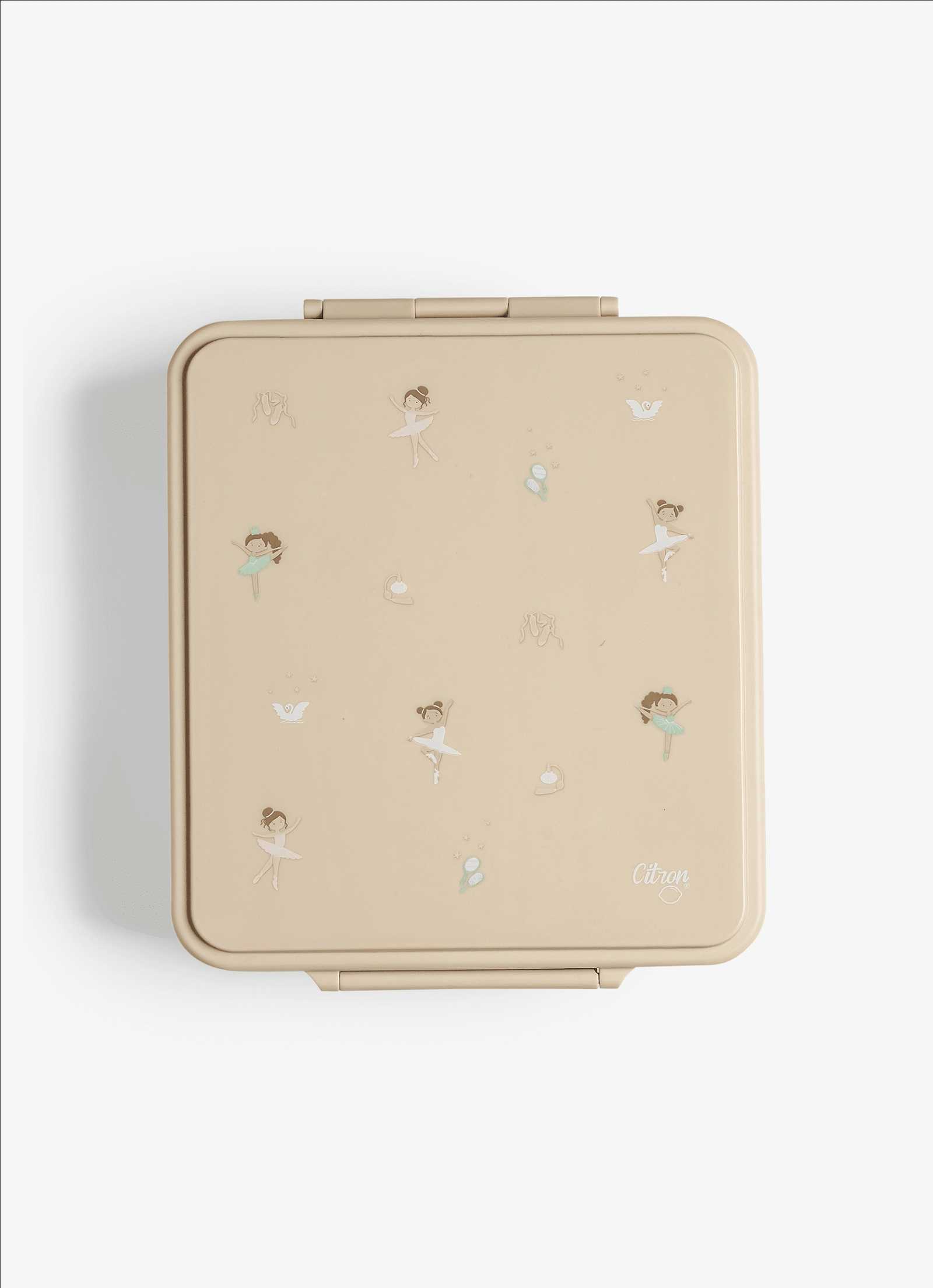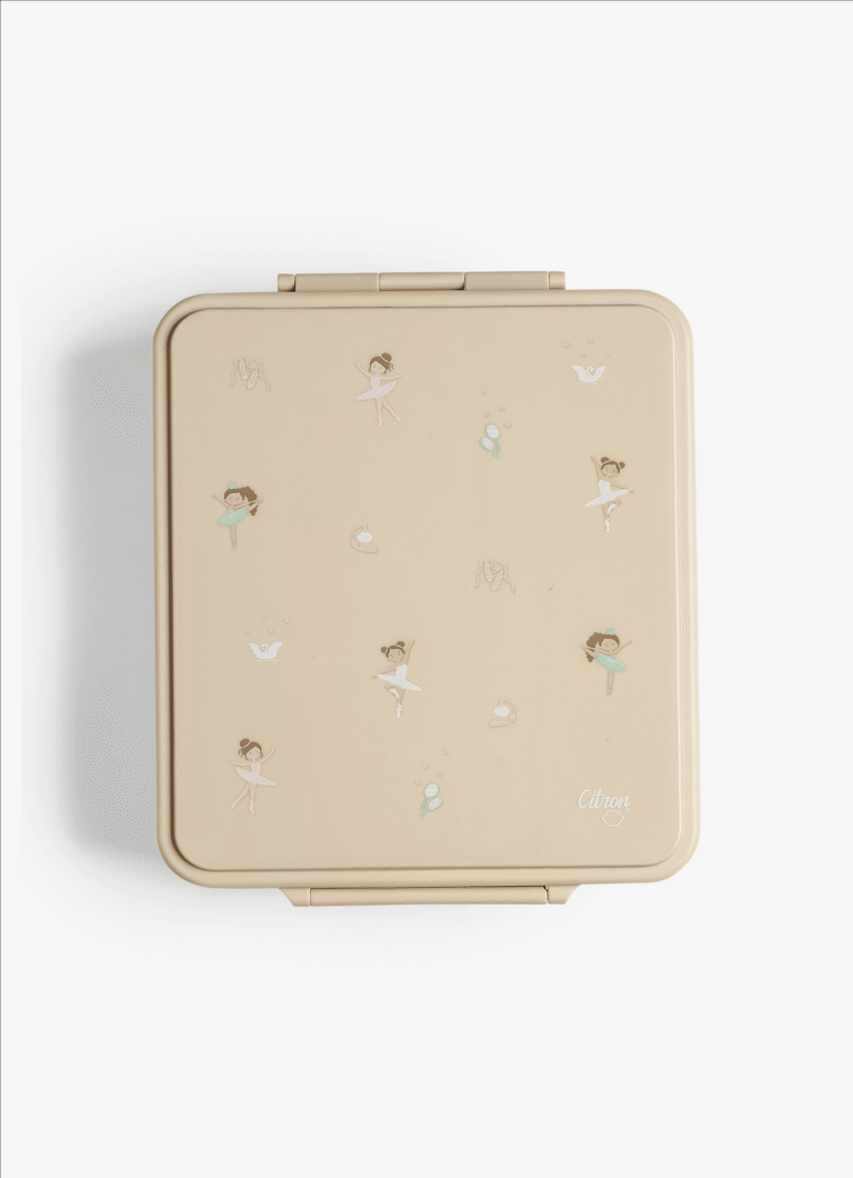 FEATURES + Stores food in 4 separate compartments, in bento lunchbox style. + Keeps the lunch bag dry and clean with its leakproof seal + Contains a 1 vacuum insulated food jar (fits 2 food jars) + Made without toxic materials (free of BPA, Phthalates and Lead) + Opens easily even with small hands + Suitable for kids 18+ months + Lined with removable silicone for ease of washing + Holds up to 1900ml of food, and still lightweight + Dimensions: 23.6x19x7.15cm AVAILABLE IN 2 COLOURS/PRINTS Ballerina | Vehicles