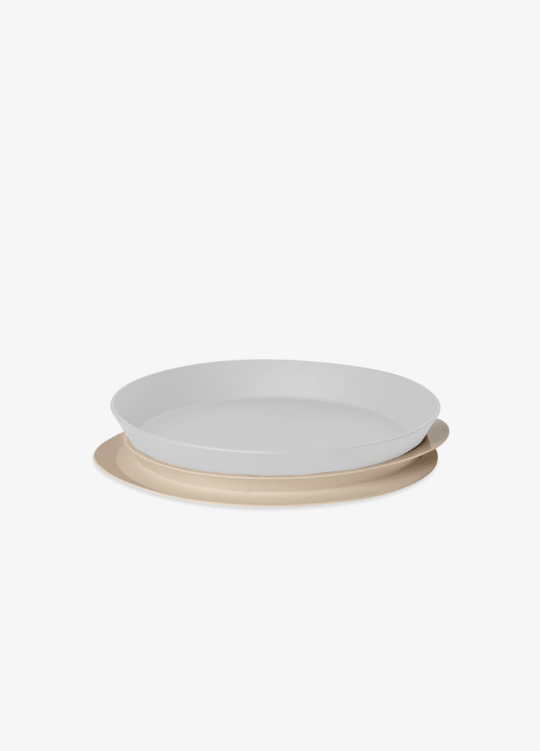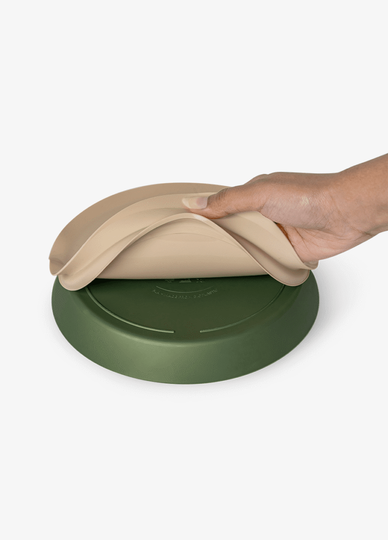 This silicone plate divider has two separate sections and fits our Bio-Based Plate, so you can keep items in different places and help to develop motor skills.