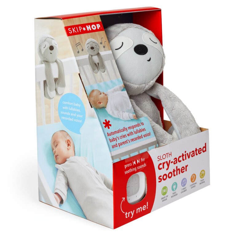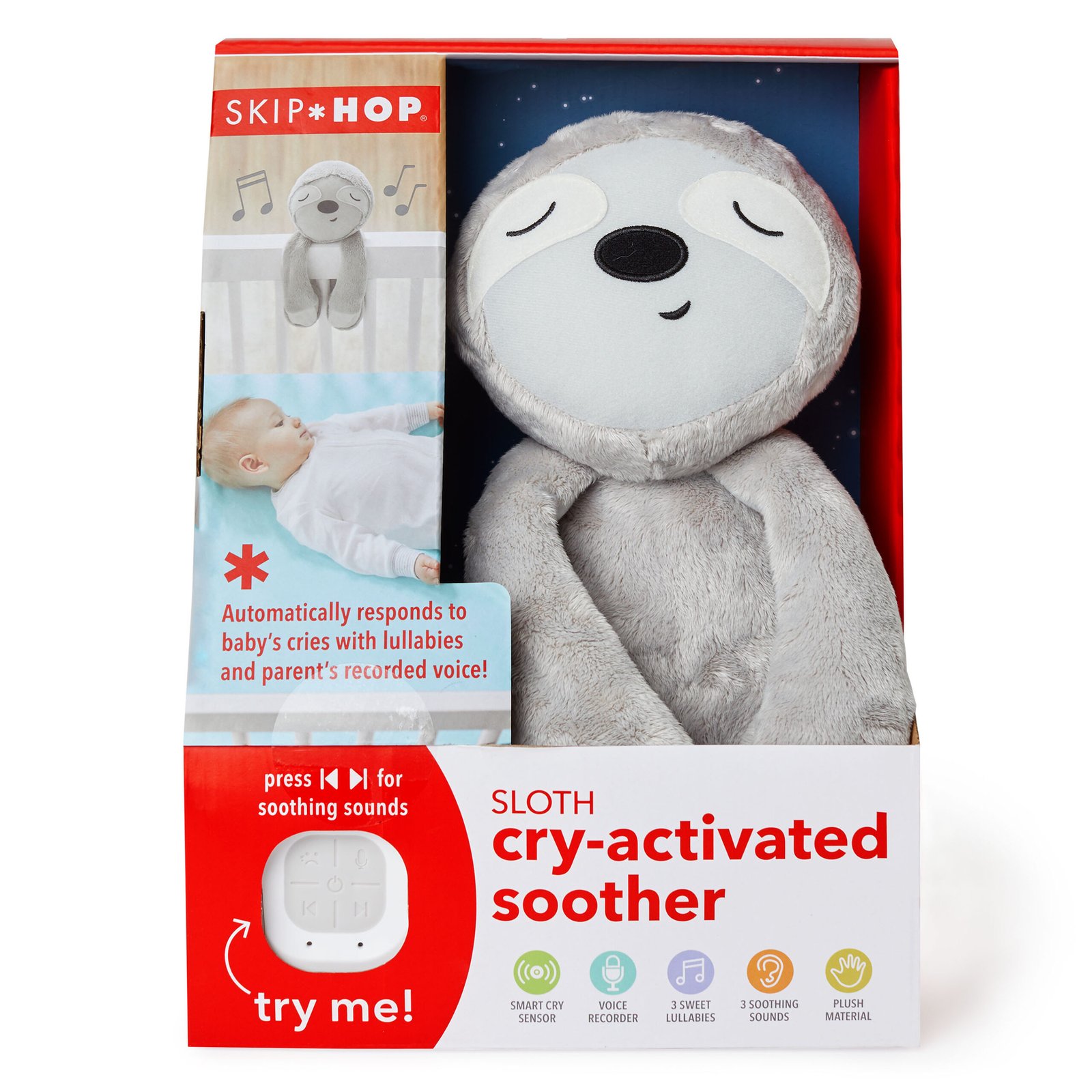 Soothe baby with sweet songs, nature sounds and your recorded voice—even in the middle of the night! This soft bedtime friend features an innovative cry-activated smart sensor that automatically responds to cries so baby and parents get a good night’s sleep. Easy to attach to the crib, it’s also a cinch to set and customize—a voice recording option lets mom and dad comfort baby no matter where they are. As baby grows, it becomes a huggable friend for toddlers.