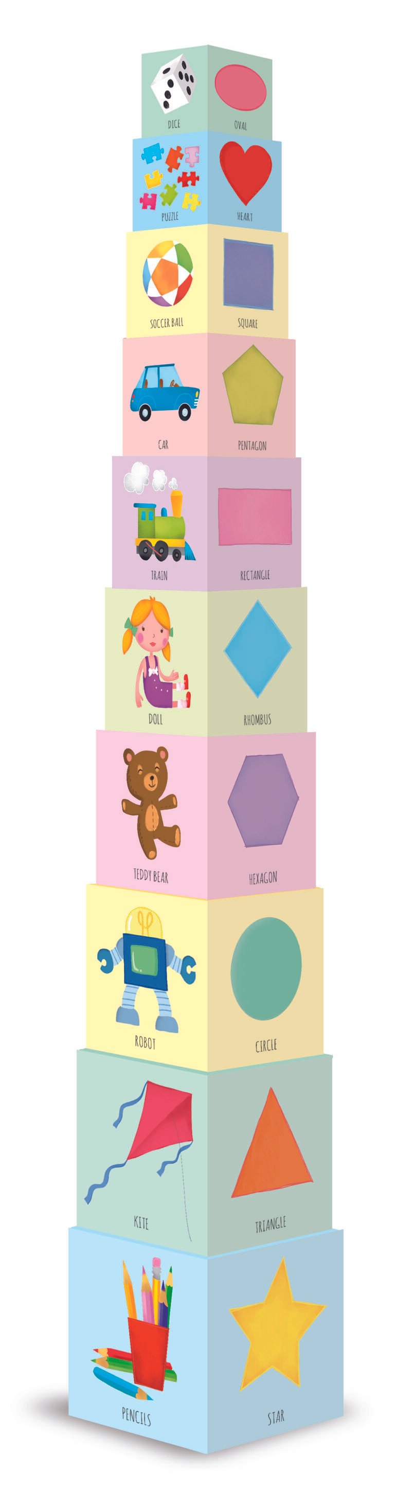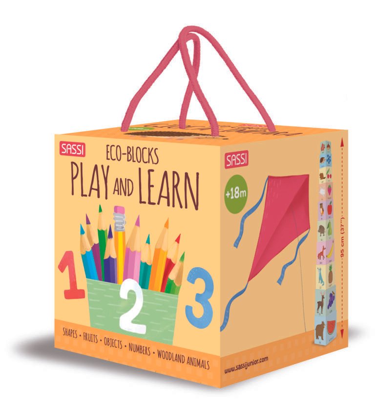 A cube in sturdy cardboard that contains an illustrated booklet to learn many different notions through reading and play. The tower made up of the cubes, which reaches a height of 95 cm, allows the child to learn to recognize the names of forest animals, objects, fruit, and very tall again! Ten sturdy stackable cubes to learn shapes, fruit, objects, numbers and names of the animals in the woods.