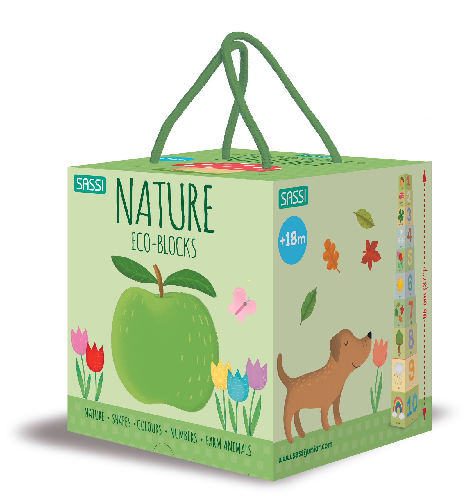 A useful tool for early childhood learning: thanks to the cubes of different sizes and the illustrated booklet contained in the box, the child will be able to learn the names of colours, farm animals, shapes and elements of nature and to count up to 10. Ten sturdy cubes that can be stacked and inserted into each other to learn about the elements of nature and learn the shapes, colours, numbers and names of the farm animals.