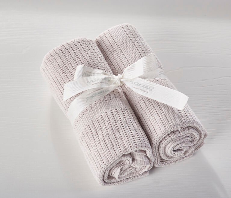 This 2 pack of grey cellular shawls feature a traditional cellular pattern and are perfect to use as pram blankets and as an extra bedding layer. they are made from 100% cotton and are the prefect accessory for any pram, moses basket or cot.