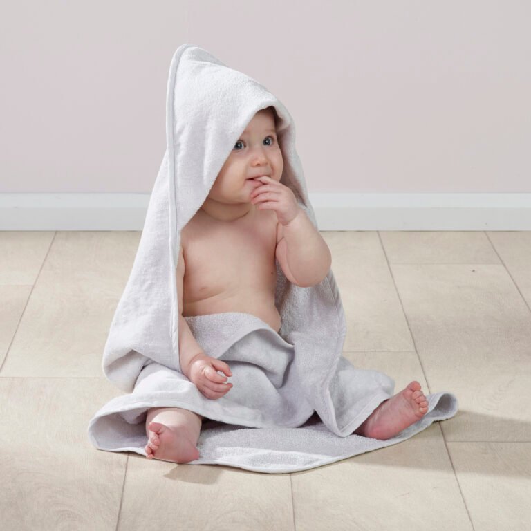 Wrap up after bath time with our grey hooded towel, 100% cotton this product is soft on your baby’s skin and will get them dry in no time.