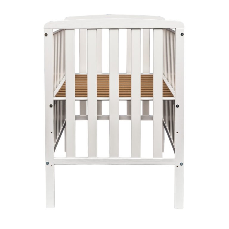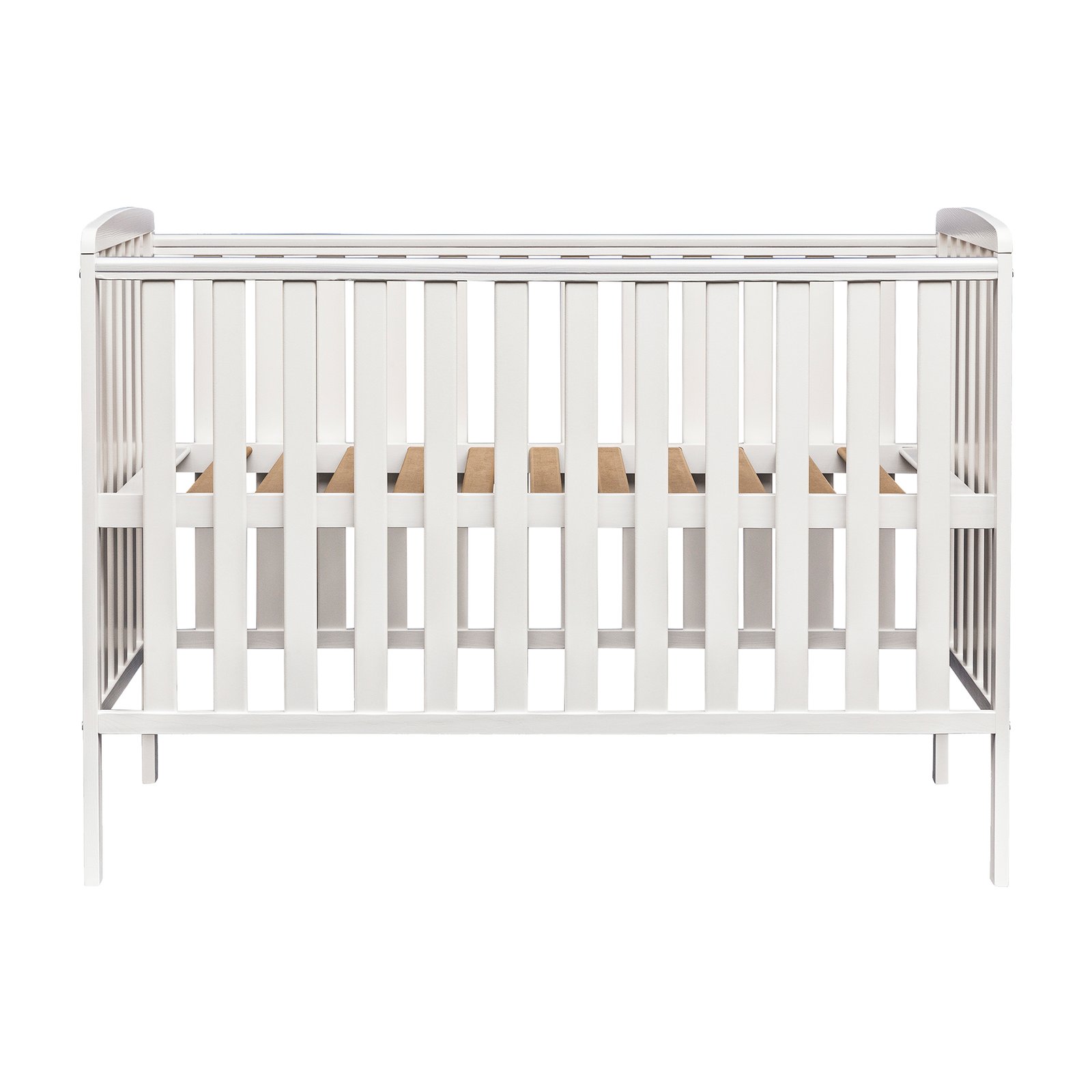 This Kinder Valley Havana Cot is crafted from solid pine wood and has a stylish white painted finish. It has a contemporary new England style head board with smooth slimline slats, sleek side rails and the option of three base height positions. It also comes with teething rails attached to protect little teeth and gums. It comes flat packed and easy to assemble, with tools included. Suitable from birth up to 3 years, this cot is perfect for any nursery.