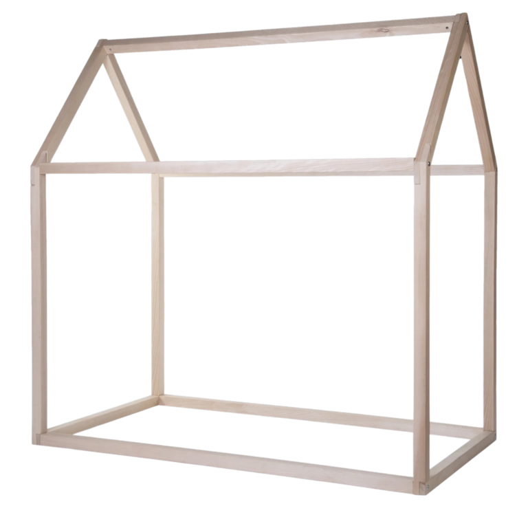 Imagine sleeping comfortably in your own cozy little house—how delightful does that sound? This **wooden bedframe**, crafted in the shape of a charming house, is the perfect statement piece to complete any bedroom and add a touch of whimsy. Its inviting design sparks the imagination, creating a unique and cozy haven where kids can feel safe, comfortable, and excited to go to bed each night.