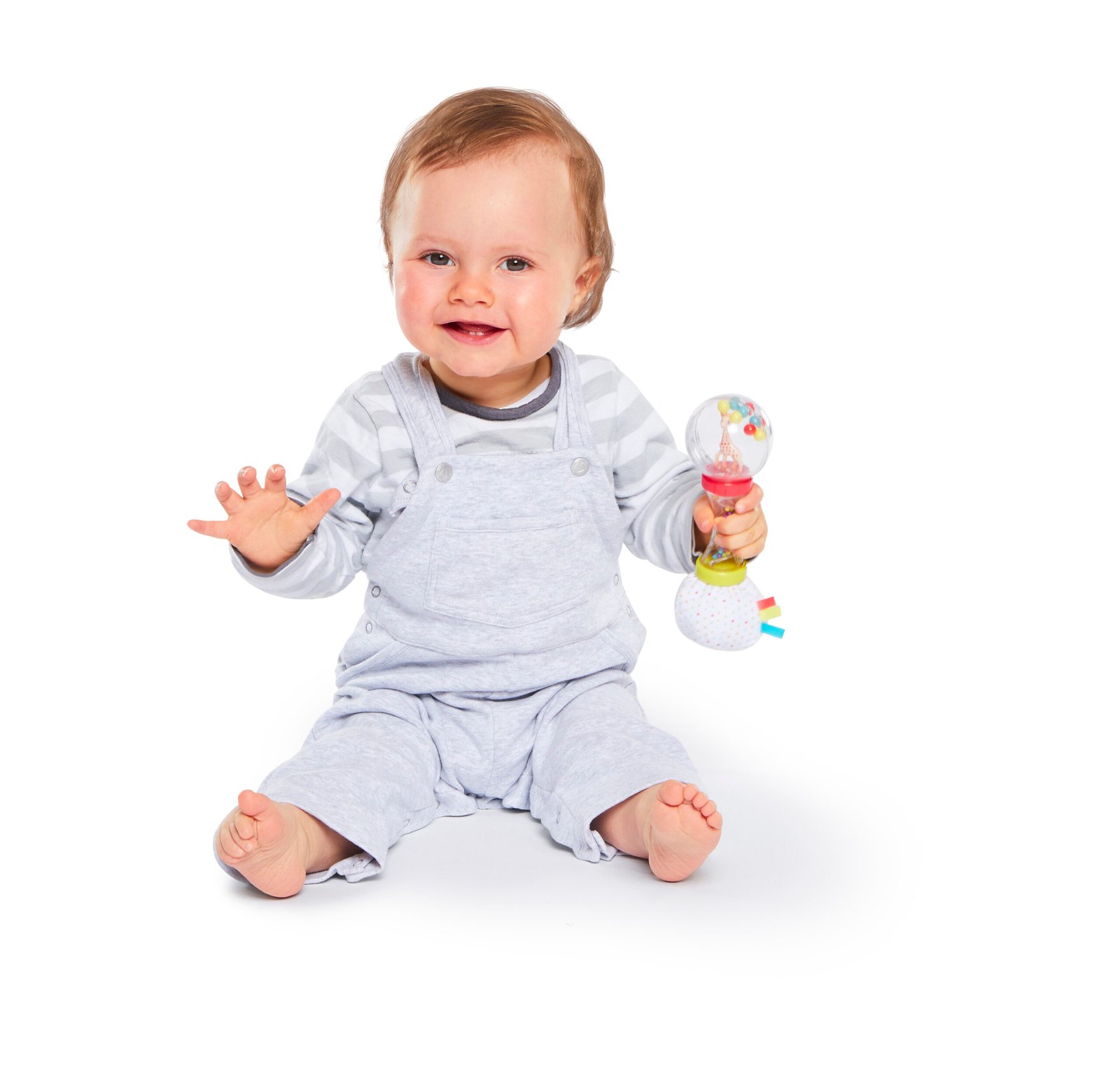 Thanks to the ergonomic shape of the handle, the rattle is easy to grasp and to handle. Funny, Baby shakes it to see and hear the multicoloured balls clashing on eachother. To discover : A rain-stick and coloured balls that turn around Sophie la girafe. Smart, the textile ball stimulates Baby thanks to the wrinkled paper sound and textured little tags. To handle without moderation with the fingers and or the mouth !