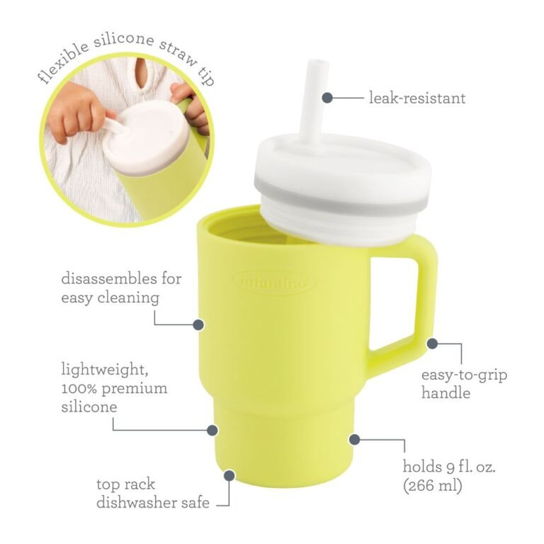Infantino My 1st Tumbler – Adorable Miniature Tumbler with Leak-Resistant Straw and Toddler-Friendly Handle, Encourages Hydration – 6M+, 9 oz, Citrus