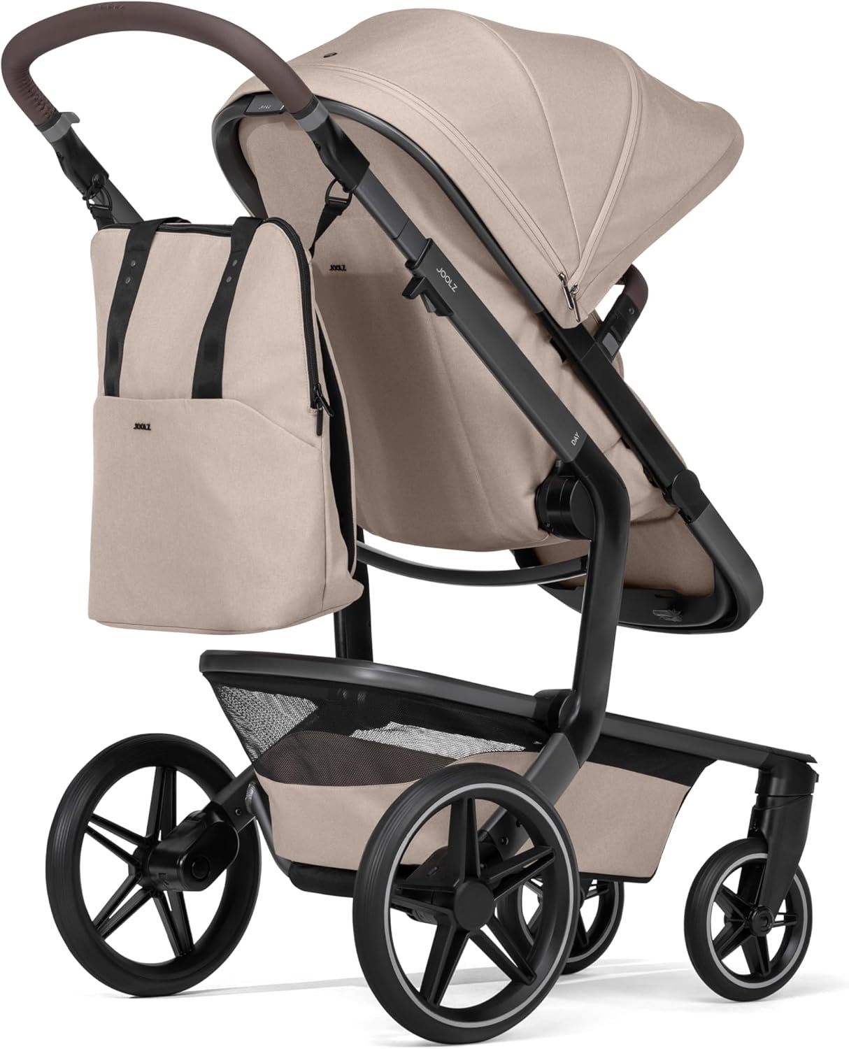 An integrated, foldable changing mat provides a hygienic surface for diaper changes on the go. The bag’s design allows for easy attachment to Joolz strollers, offering hands-free convenience during walks or errands. Its sleek, minimalistic aesthetic is available in various colors, complementing your personal style and stroller choice.