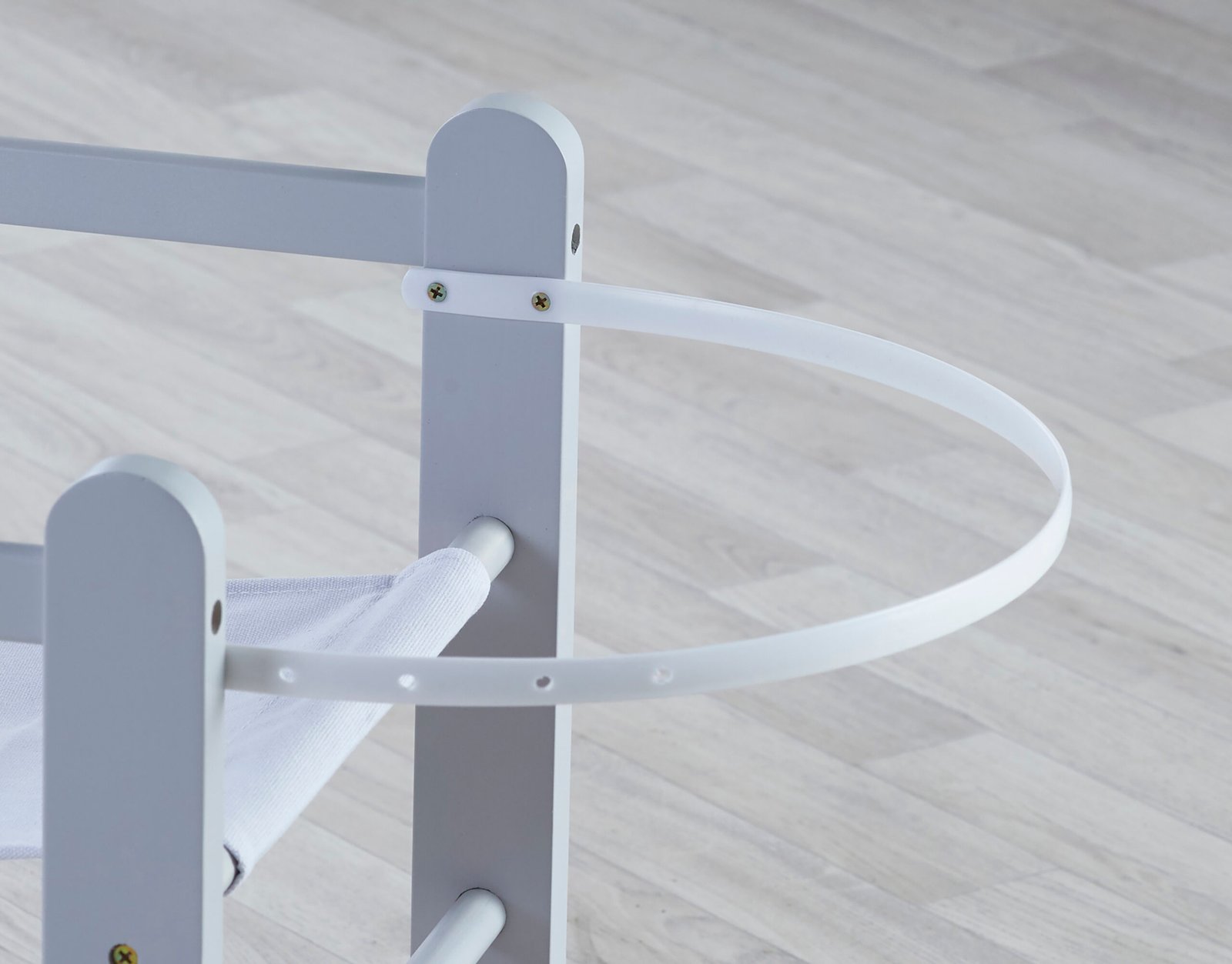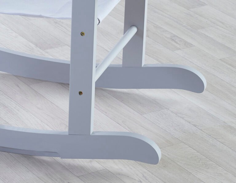 Our Little Gem Rocking stand is a perfect accessory for your moses basket. It is made from solid pine wood with a White painted finish, has a curved base which ensures a smooth rocking motion which will soothe your baby to sleep and adjustable straps to fit any basket size. Easy assembly, comes with step by step instructions and all fittings are included.