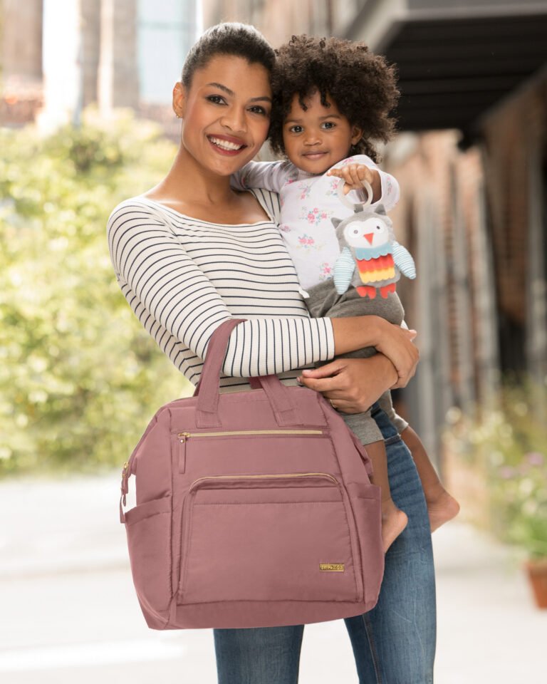 – Easy-grab double top handles Built-in stroller straps