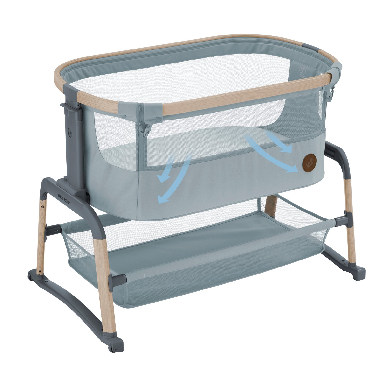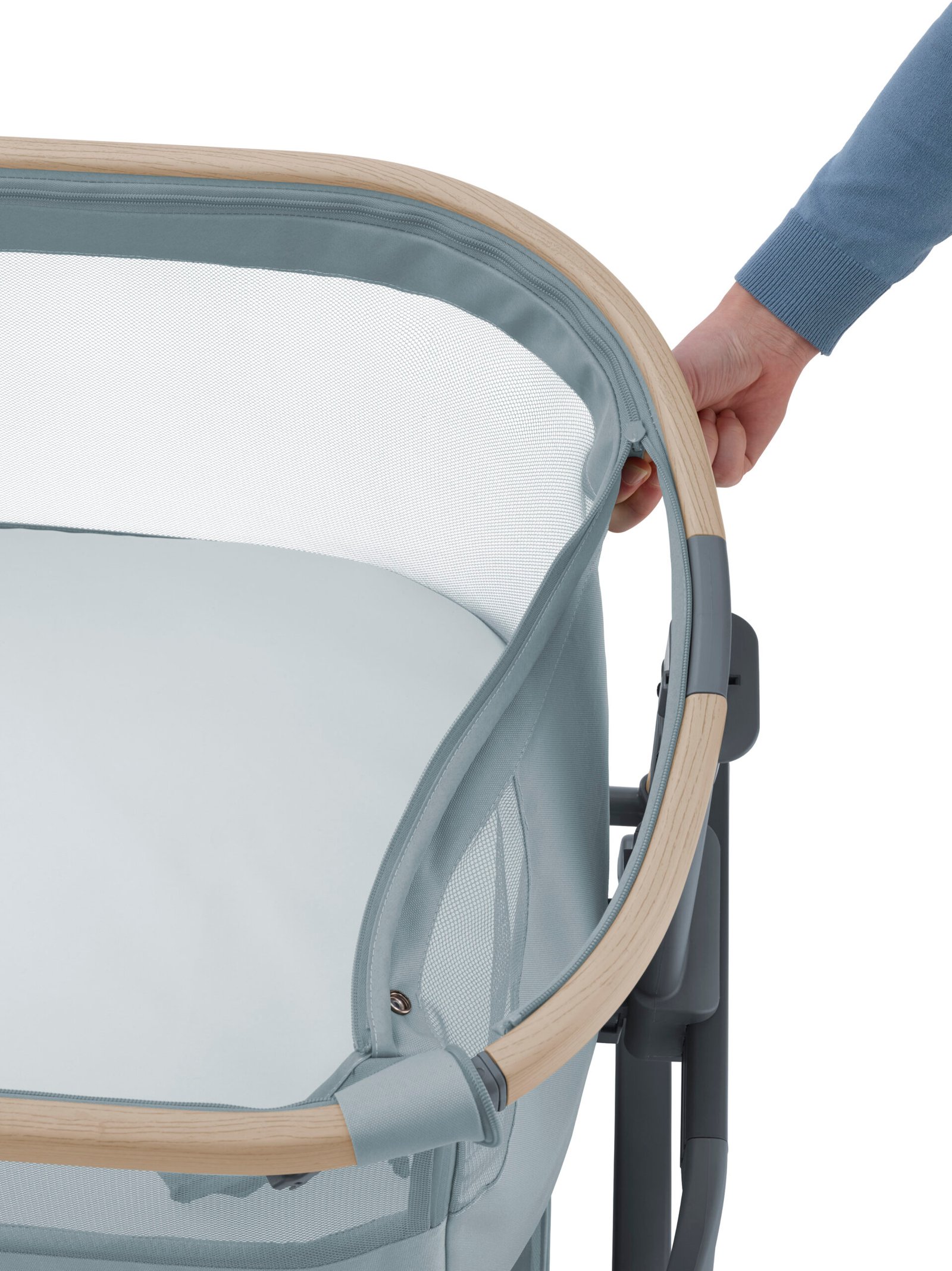With enhanced cushioning and dreamy support, the extra-thick mattress offers blissful levels of comfort for your baby to enjoy a peaceful, soothing sleep. For nap times when your newborn is a bit more restless, you can use the handy rocking feature, by simply flipping the arched leg support to rock your baby to sleep. The Maxi-Cosi Iora Air co-sleeper also features all-round fabrics to maximise air circulation, so your baby will always sleep comfortably. And with five different height positions and an easy co-sleeping slide function, you can keep your baby close, safe & secure at all times. You can even position one side higher than the other, to help relieve your baby if they have reflux or congestion.