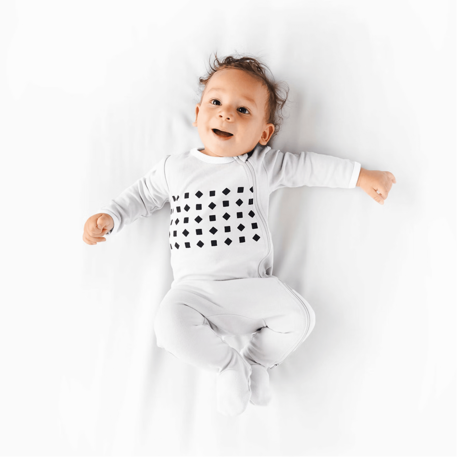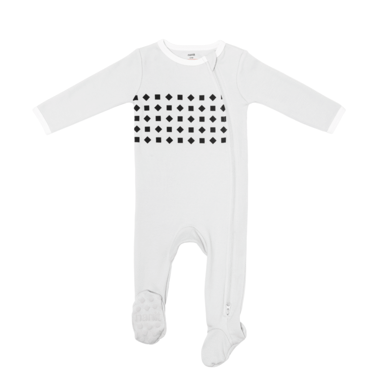 When you outfit your kiddo in our 100% cotton Pajamas for naps and nighttime ZZZ’s, you’re not only helping them get comfy for bed, you’re helping yourself too. With Nanit monitoring baby’s breath, parents can catch their breath. The custom-designed pattern on all of our Breathing Wear works with the Nanit Pro Camera’s patented computer vision technology to safely detect your baby’s breathing motion in any sleep position–without any sensors, electronics, or radars!–and sends real-time alerts should your little one need you.