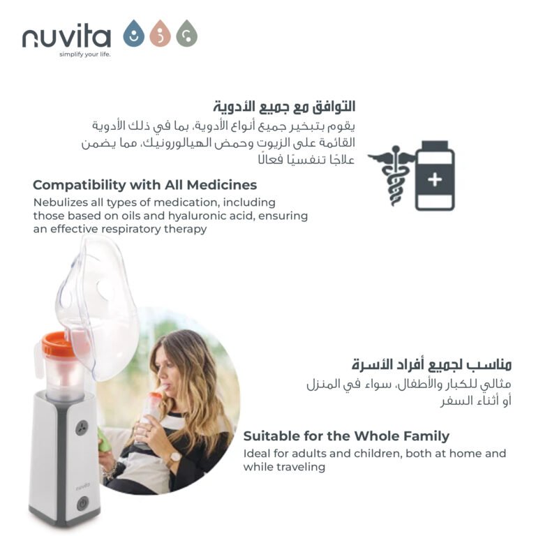 2. COMPATIBILITY WITH ALL DRUGS: It nebulizes all types of medicines, including oil-based ones and hyaluronic acid, thus ensuring effective and comfortable respiratory therapy for a wide range of applications.