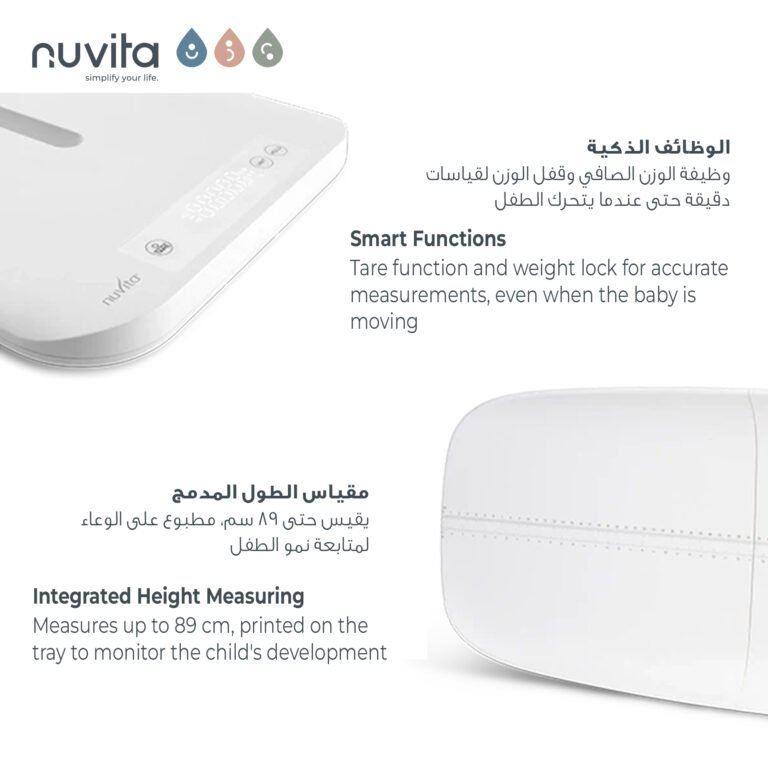 3. INTELLIGENT FUNCTIONS: The tare function excludes the weight of accessories such as a towel or diaper; the weight lock function ensures precise measurements even when the child moves.