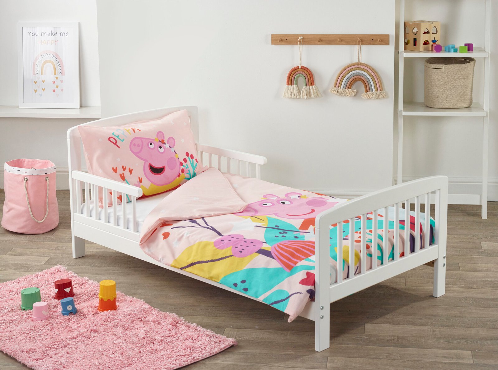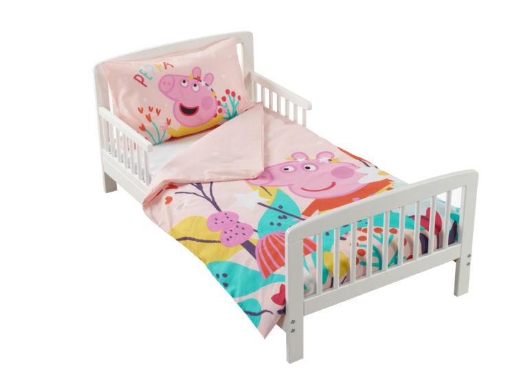 Oink oink! It’s time for Peppa to snuggle down and get some well deserved rest after a long day of mischief! This Official licensed Peppa Pig™ Toddler bedding set comes complete with everything your little one needs for a cozy, snuggly sleep dreaming of muddy puddles and adventures.