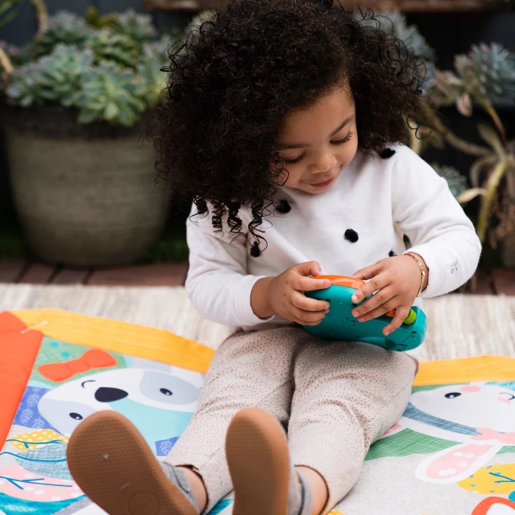 Babies will go gaga for these squishy, soft, easy to clean foam tiles. From tummy time to their first steps – this extra thick foam mat creates a safe, soft place for little ones to play. The textured pieces provide early sensory interaction and the pop-out puzzle shapes encourage grow-with-me play. Includes six 17.5 x17.5 puzzle squares for over 11 square feet of play space.