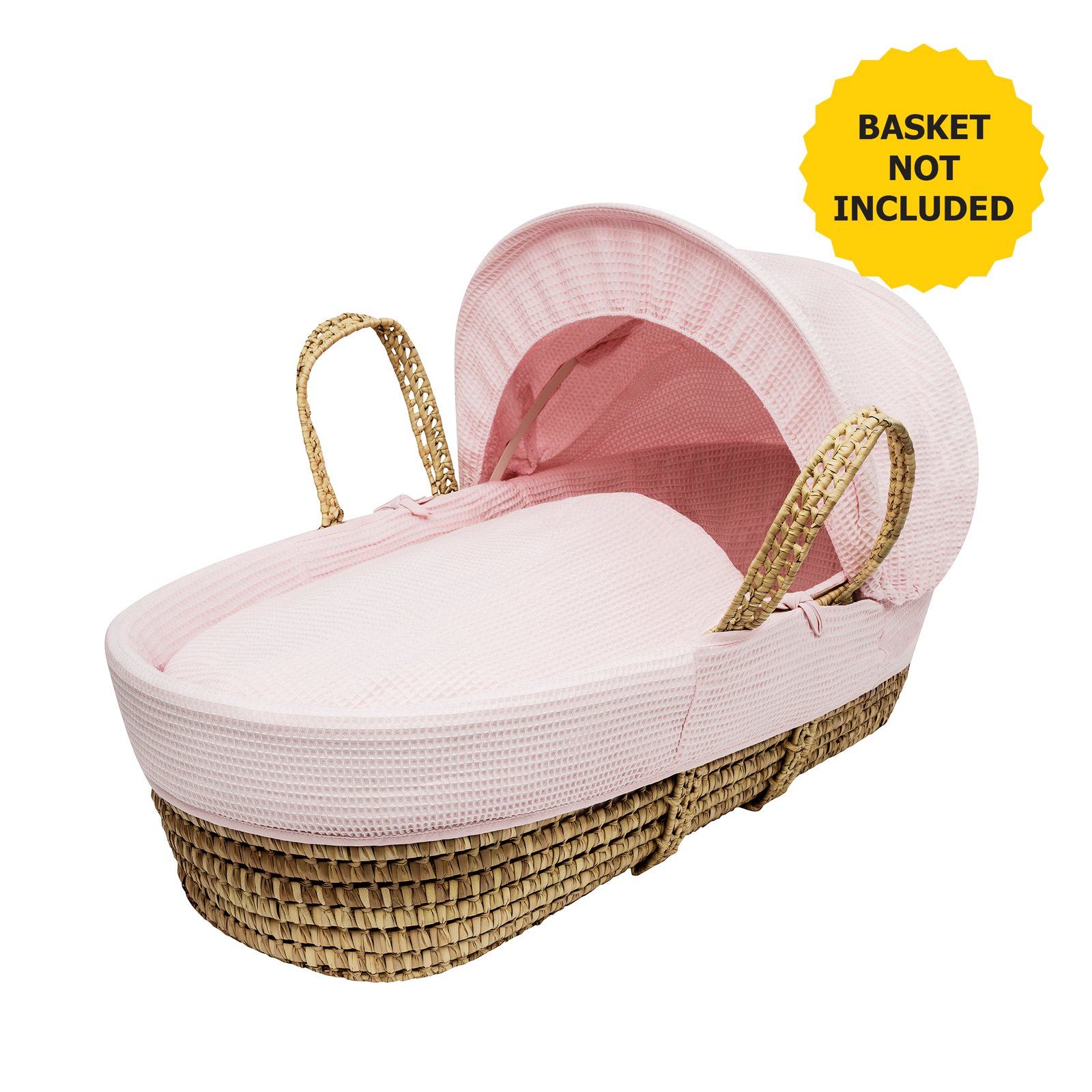 Made from 100% Cotton Waffle this bedding set is the perfect spare dressings for your moses basket. This set includes our 100% cotton waffle hood, 100% Cotton waffle fabric body, Padded quilt and Padded Liner. It is machine washable incase of any accidents. Basket and fittings NOT included.