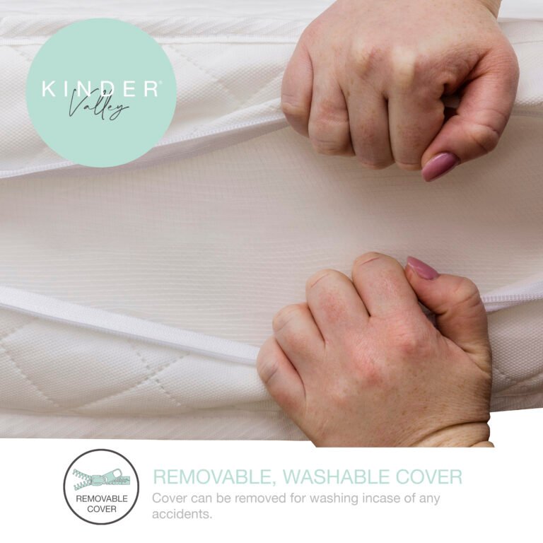 This mattress features a special net lining to enable ease of the removable, washable cover. The cover comes with a handy zip to allow you to remove it and pop in the washing machine after any little accidents. It is also breathable, water resistant and hypoallergenic and helps to protect against dust mites. This mattress helps to dissipate heat from your infant’s body for a more comfortable night’s sleep. Suitable for Cots 60cm x 120cm.