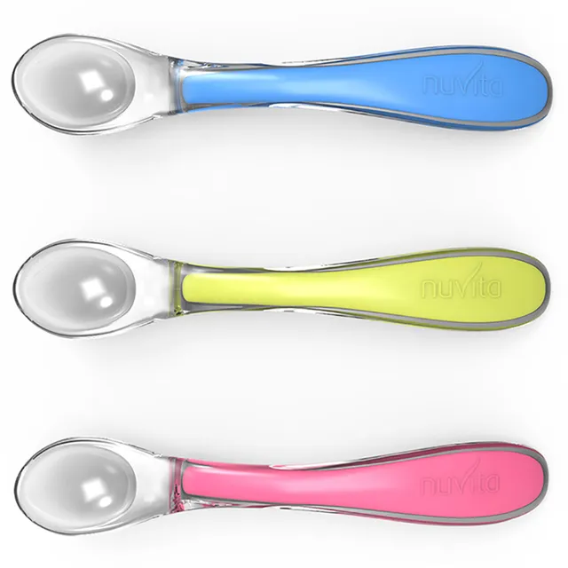 Silicone spoons are designed to be put on the table without touching the surface. Easy grip handle designed to make feeding easier for parents babies. The soft silicone tip is gentle and delicate with baby gums and teeth.