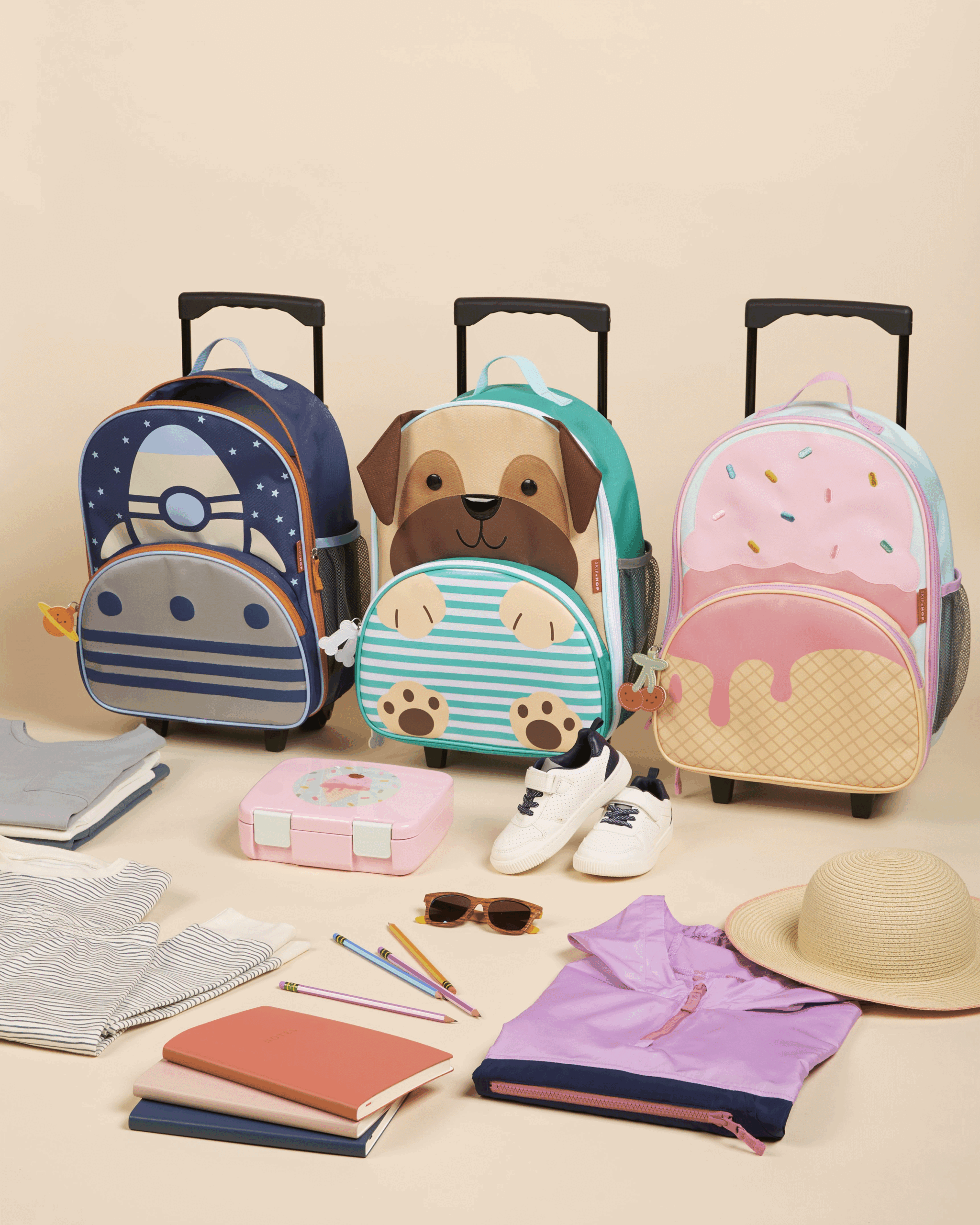 Perfectly sized for carry-ons and overnight trips (Grandma’s here we come!), our Spark Style rolling luggage for kids is the ultimate travel buddy. Sturdy enough for everyday use, the cool-kid design features a front zip pocket and bottle pocket for easy access, plus a retractable handle for travel made easy. Front zip pocket Mesh bottle pocket Retractable handle for easy carry-on Coordinates with Skip Hop’s Spark Style collection