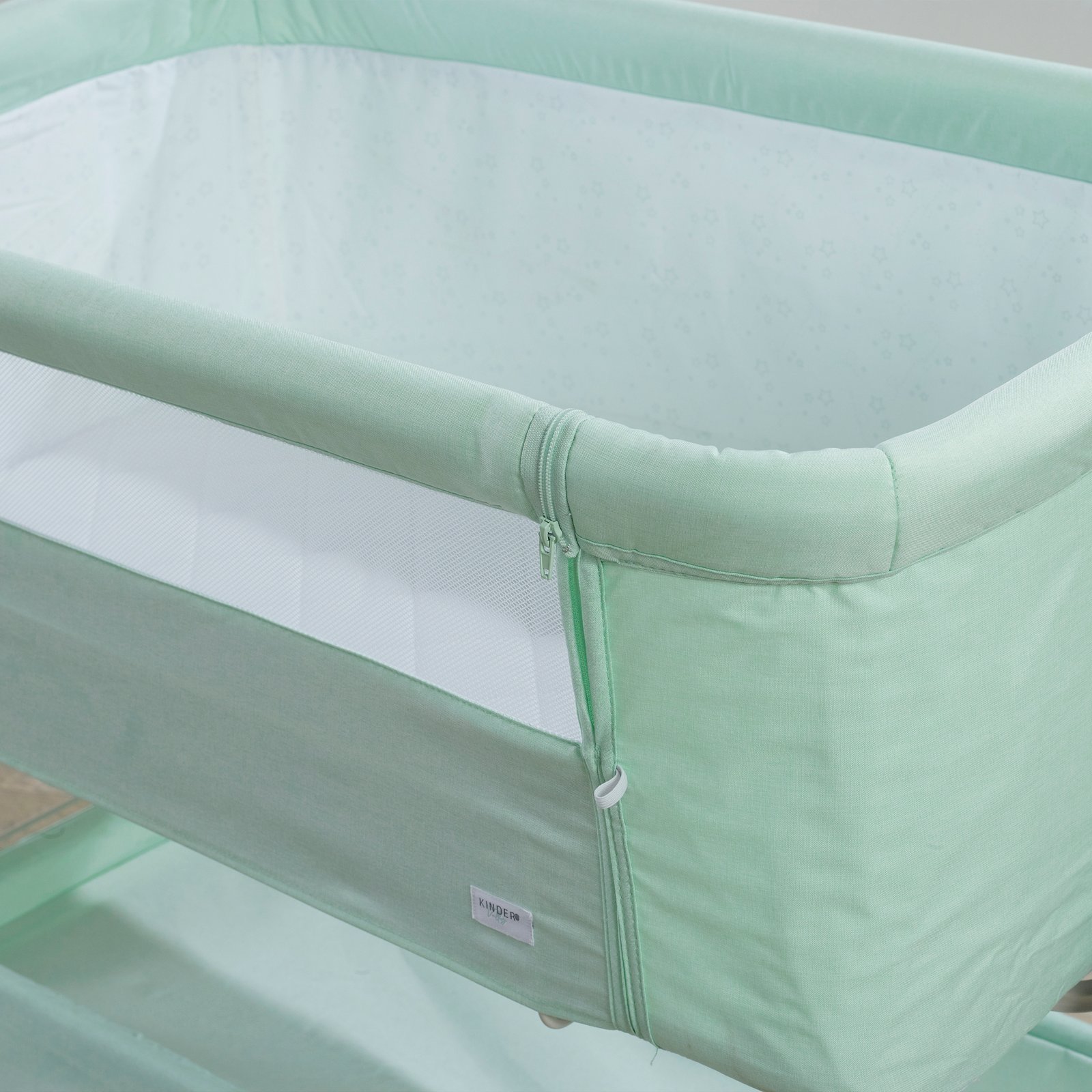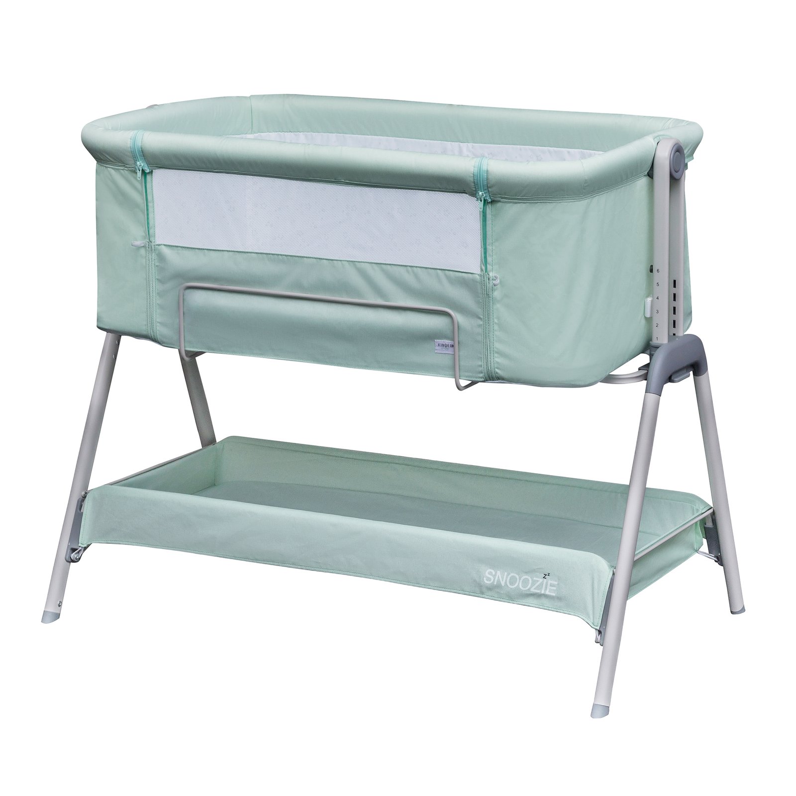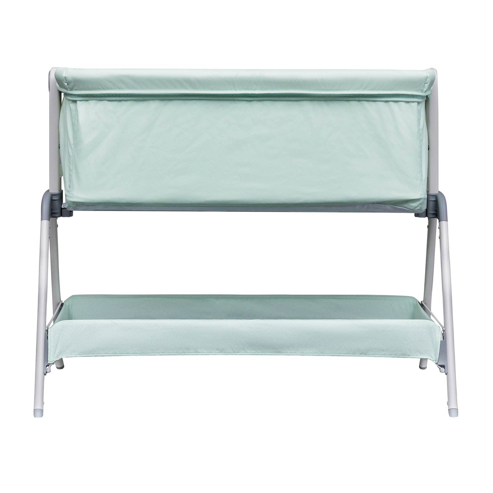 Six adjustable height positions, Mesh side panel providing air circulation & regulating body temperature, Can be unzipped and attached to bed with straps, Storage caddy situated underneath crib, Easy to assemble and dissemble, Includes travel bag
