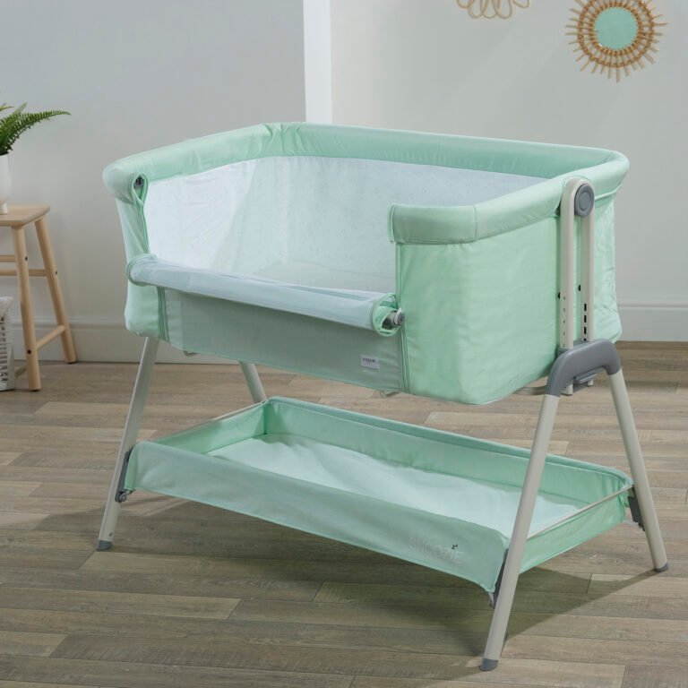 This baby side sleeper also comes with a storage caddy which is situated directly underneath the crib. The storage compartment is big enough to house all the essentials that any new parent could need throughout the day and night such as bottles, swaddles, nappies and wipes. The storage compartment is attached securely and firmly to the sturdy aluminium legs.